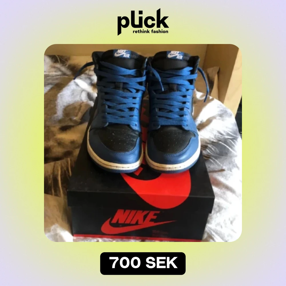 Jordan 1 high og dark Marina blue. Skick: mycket använda, två första bilderna är gamla. Storlek 44. Skriv för mer bilder.