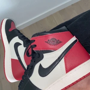 Jordan 1 köpta från i jul, lite creasade där fram och bak, (lite slitna). överlag jättefina:) Storlek 38. Pris diskuteras men just nu satte jag priset på 899 om ingen skulle buda