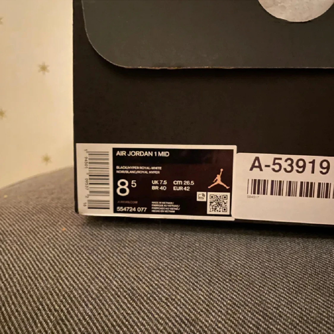 Säljer Jordan 1 mid hyper royal. Storlek 42. Köpt från Restocks. Bra skick, för flera bilder kom DM. Pris kan diskuteras.