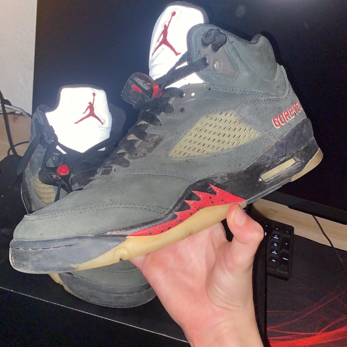 Priset är ej hugget i sten och kan diskuteras, vill helst gärna bli av med dom för en slant. Jordan 5 goretex ja fick i julklapp, tvättas innan frakten. Skickas med lådan om de önskas. DM för bilder.
