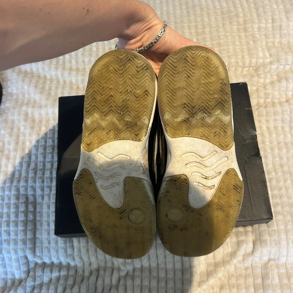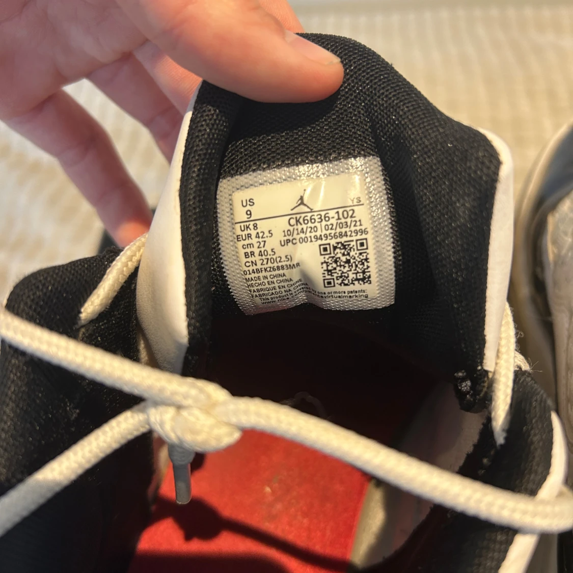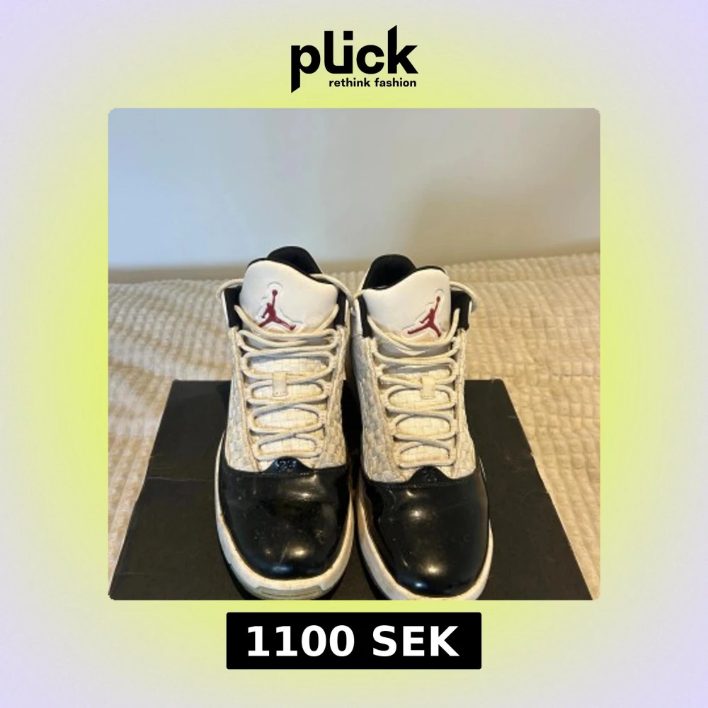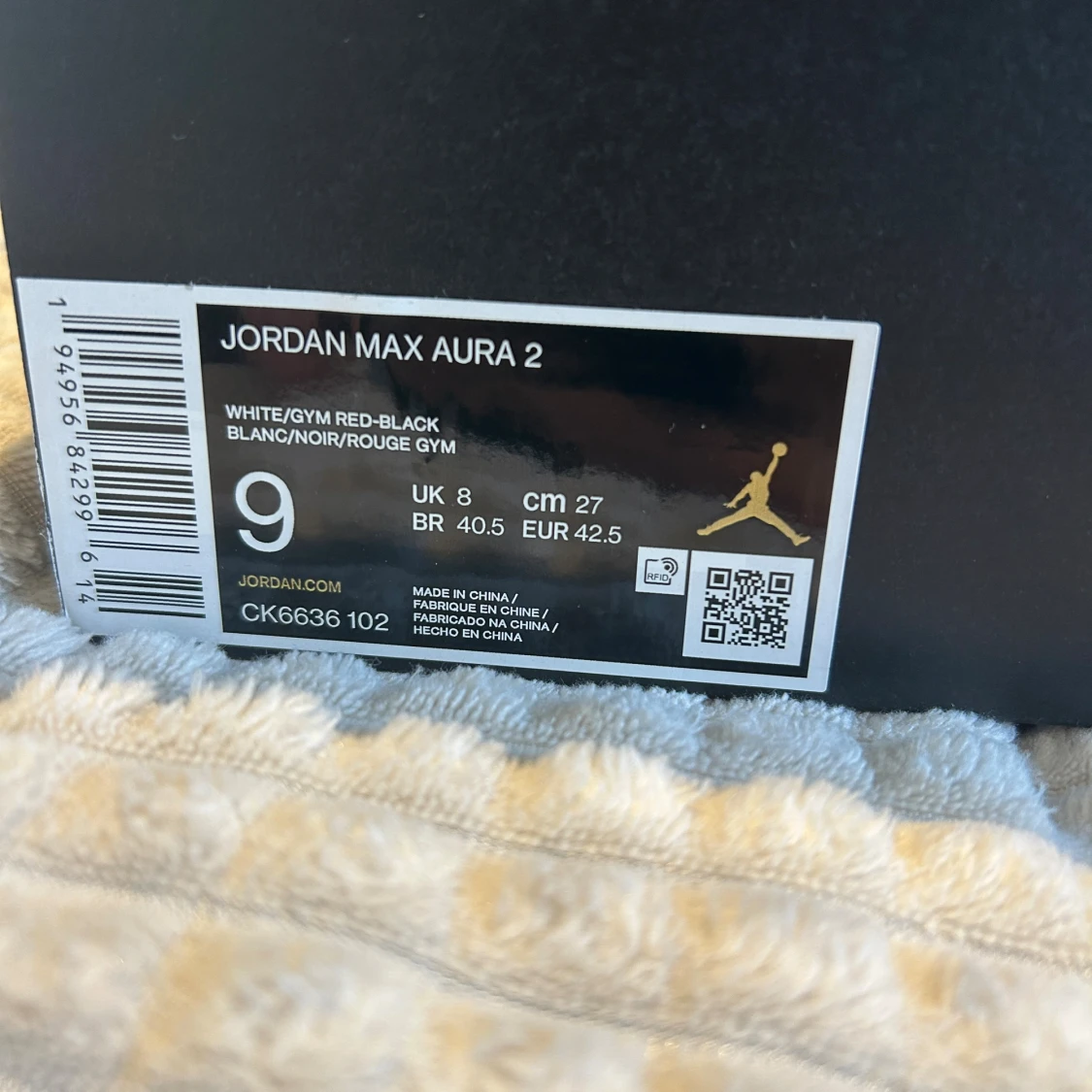 Säljer ett par Jordan Max Aura 2 sneakers i storlek 42.5. Skorna är vita med svarta och röda detaljer, har snörning och en cool vävd struktur på ovandelen. Klassisk Jumpman-logga på plösen och robust sula. Perfekta för dig som gillar streetwear och basketstil. Skorna är i Jättebra skick, inte skadade eller slitna nånstans bara lite smuts som går bort hur lätt som helst