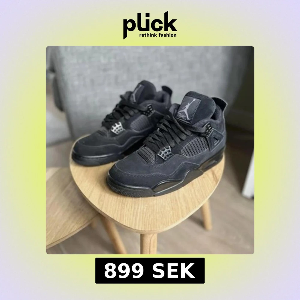 Säljer ett par Nike Air Jordan 4 Retro Black Cat sneakers i helsvart mocka och syntet. Klassisk siluett med meshpaneler, snörning och ikoniska Jumpman-loggor på plös och sula. Riktigt clean och stilren modell som passar till allt. Har boxen tlll dom då dom e helt nya skickar dom över hela Sverige👍