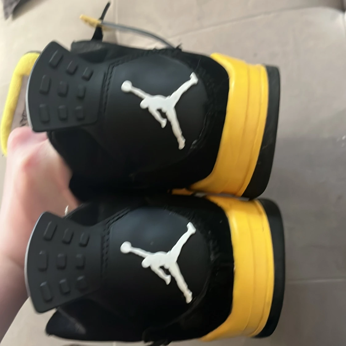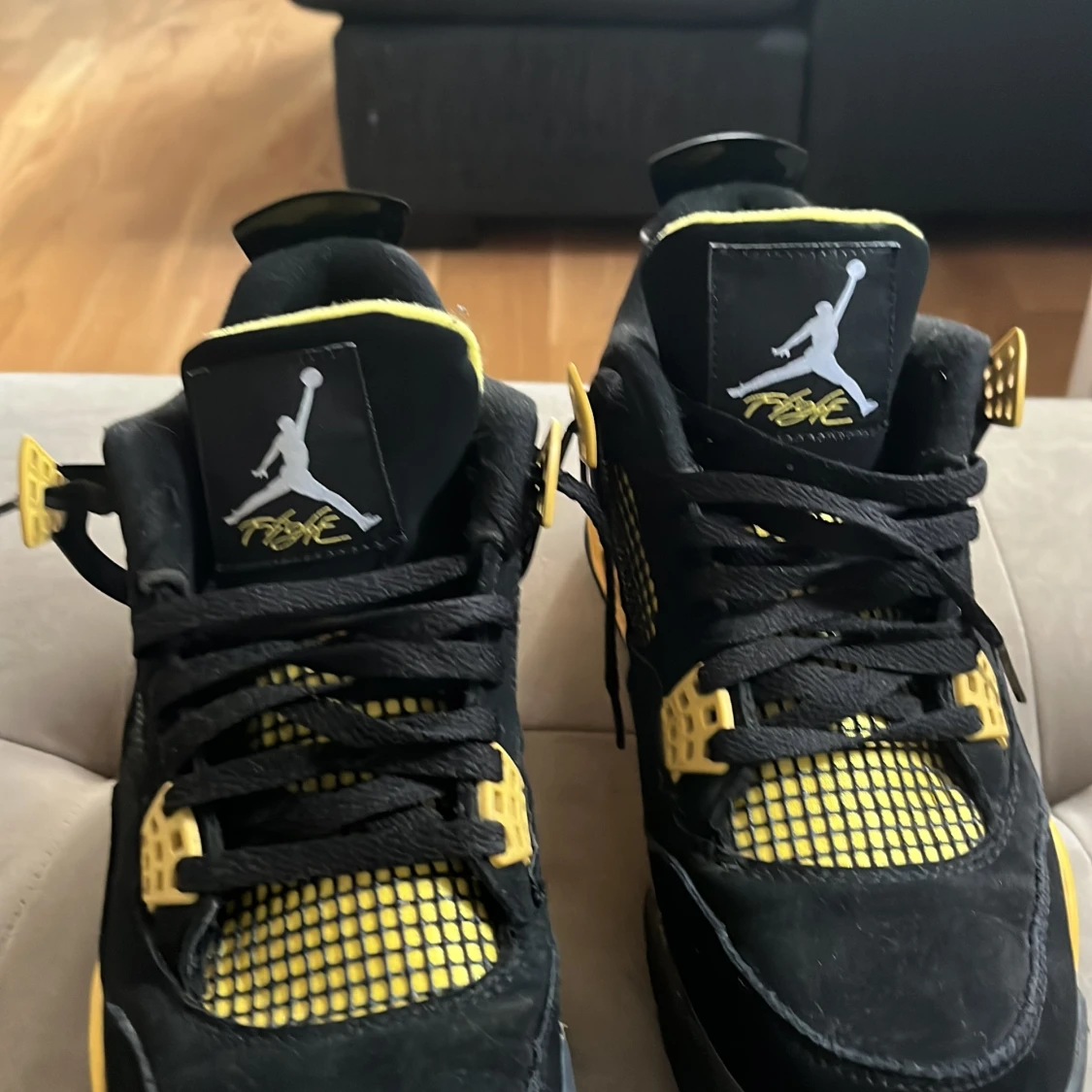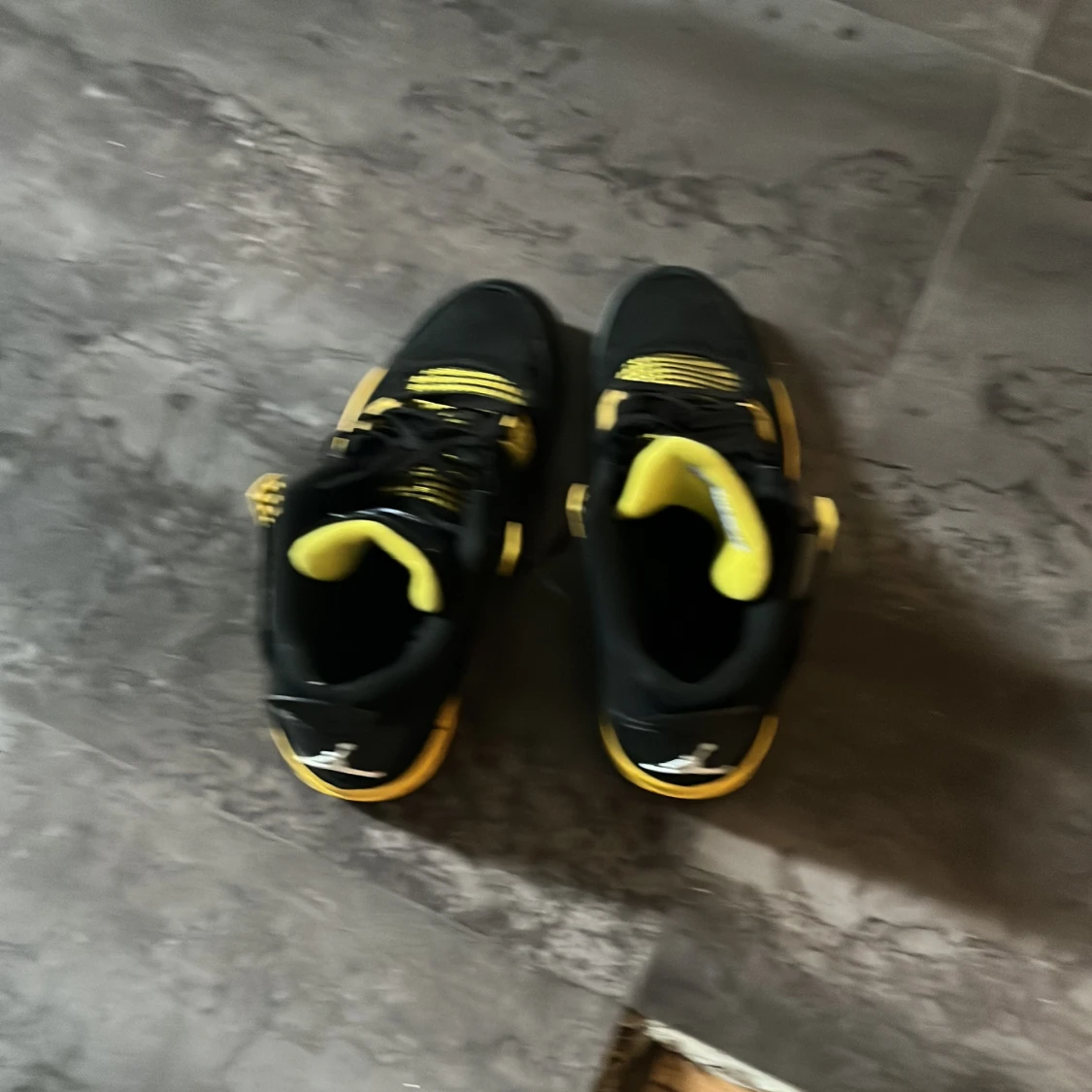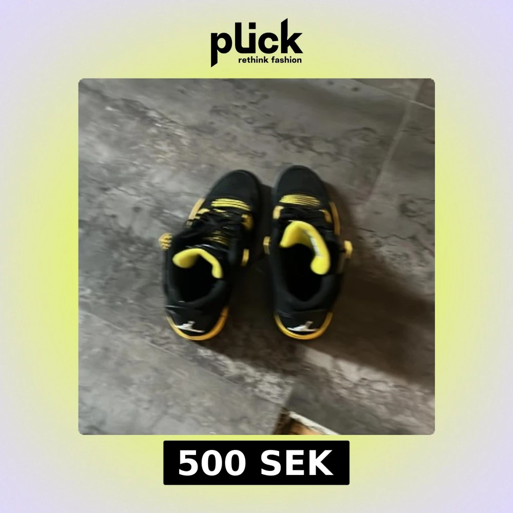 Säljer ett par svarta sneakers med gula detaljer från Jordan. Skorna har snörning och den klassiska Jumpman-loggan på sulan. Perfekta för dig som vill sticka ut med färg och sportig stil,