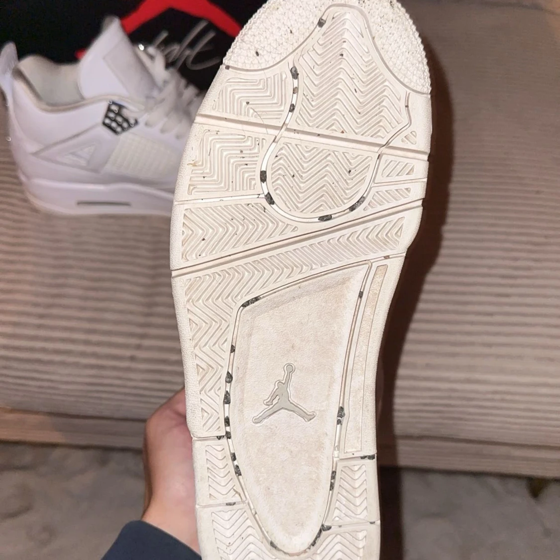 Tjena! Säljer nu mina Jordan 4 då jag inte har någon användning till dom, är lite smutsiga under men lätt att ta bort. Det är inga skador på skorna eller liknade märken.😁 använda några gånger bara.😃