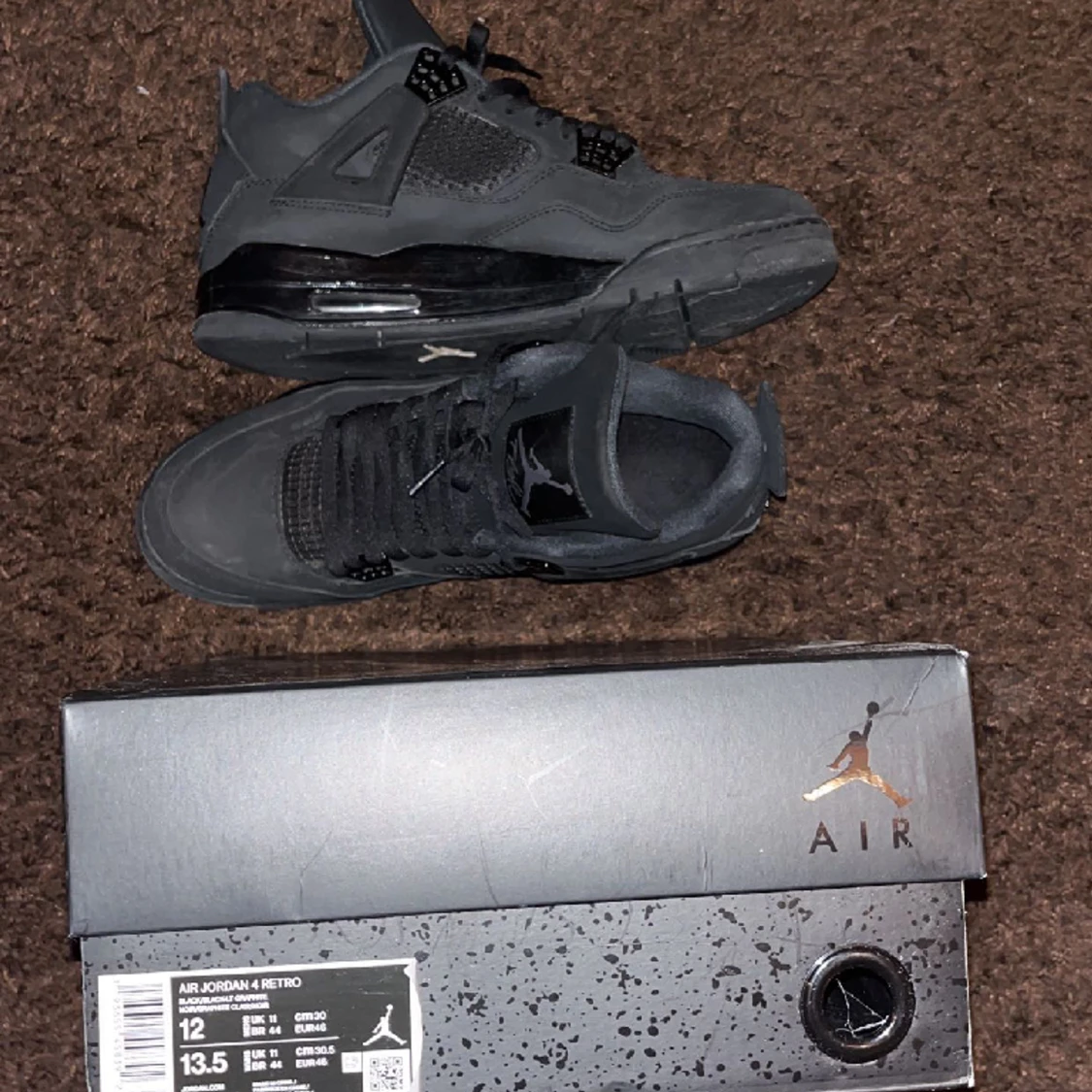 Jordan 4 black cats, storlek 46, köpta av en vän för 2999kr, box tillkommer, PM för att diskutera pris samt fler bilder.