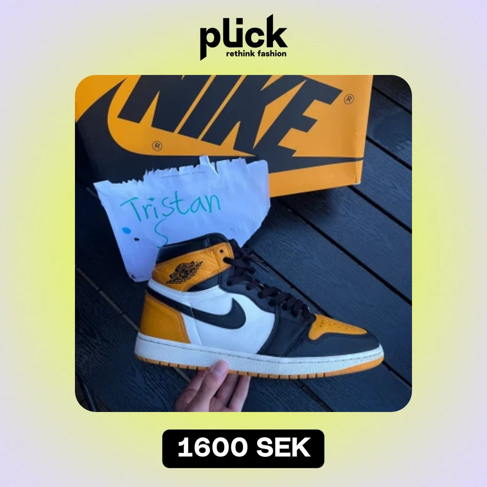Jordan 1 high Yellow Toe Storlek 47/12.5 Bedöm skick själv med hjälp av bilderna, har självklart andra skon med men fick inte ha fler bilder i anonsen! 1600kr