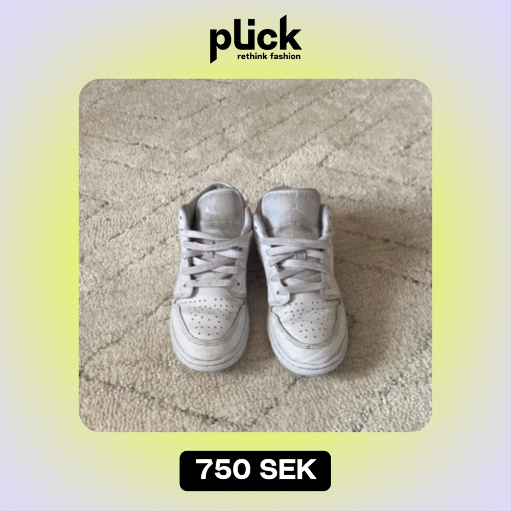 Helt vanliga vita Jordans lite slitna och box medföljds, skorna är lite slitna mer har ej andvänt dom mycket. Boxen kan vara lite sliten med borttaget klistermärke.