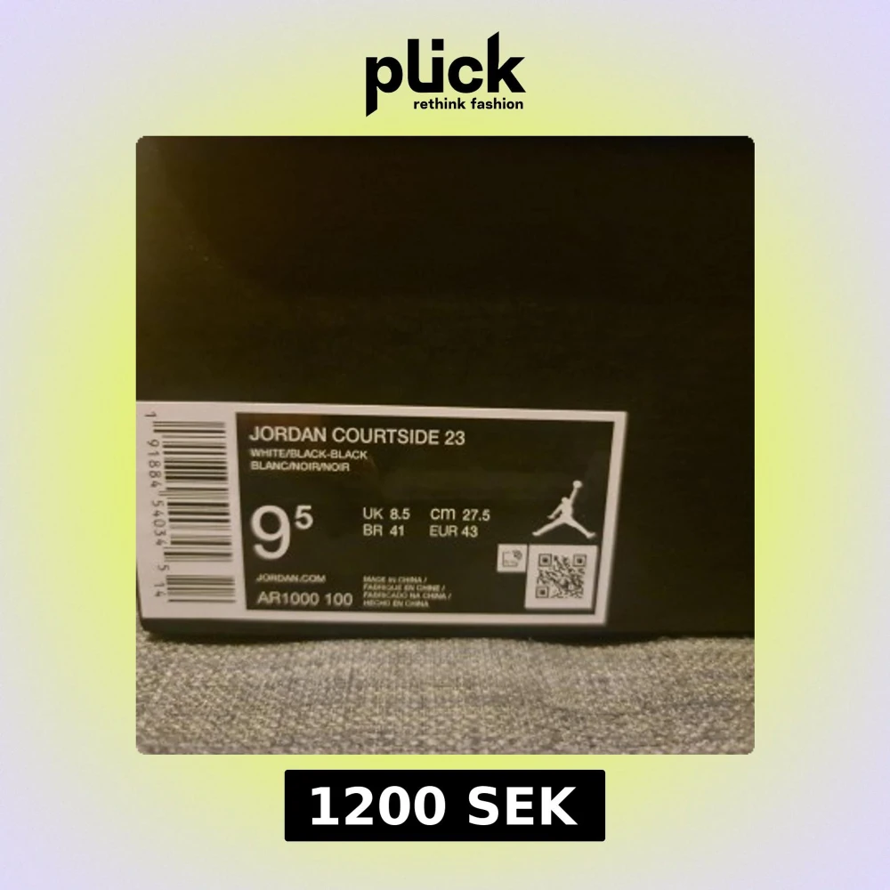 Snygga Jordan Courtside 23 sneakers i vitt och svart. Skorna har en klassisk design med snörning och den ikoniska Jumpman-loggan på sidan. Perfekta för en sportig look.
