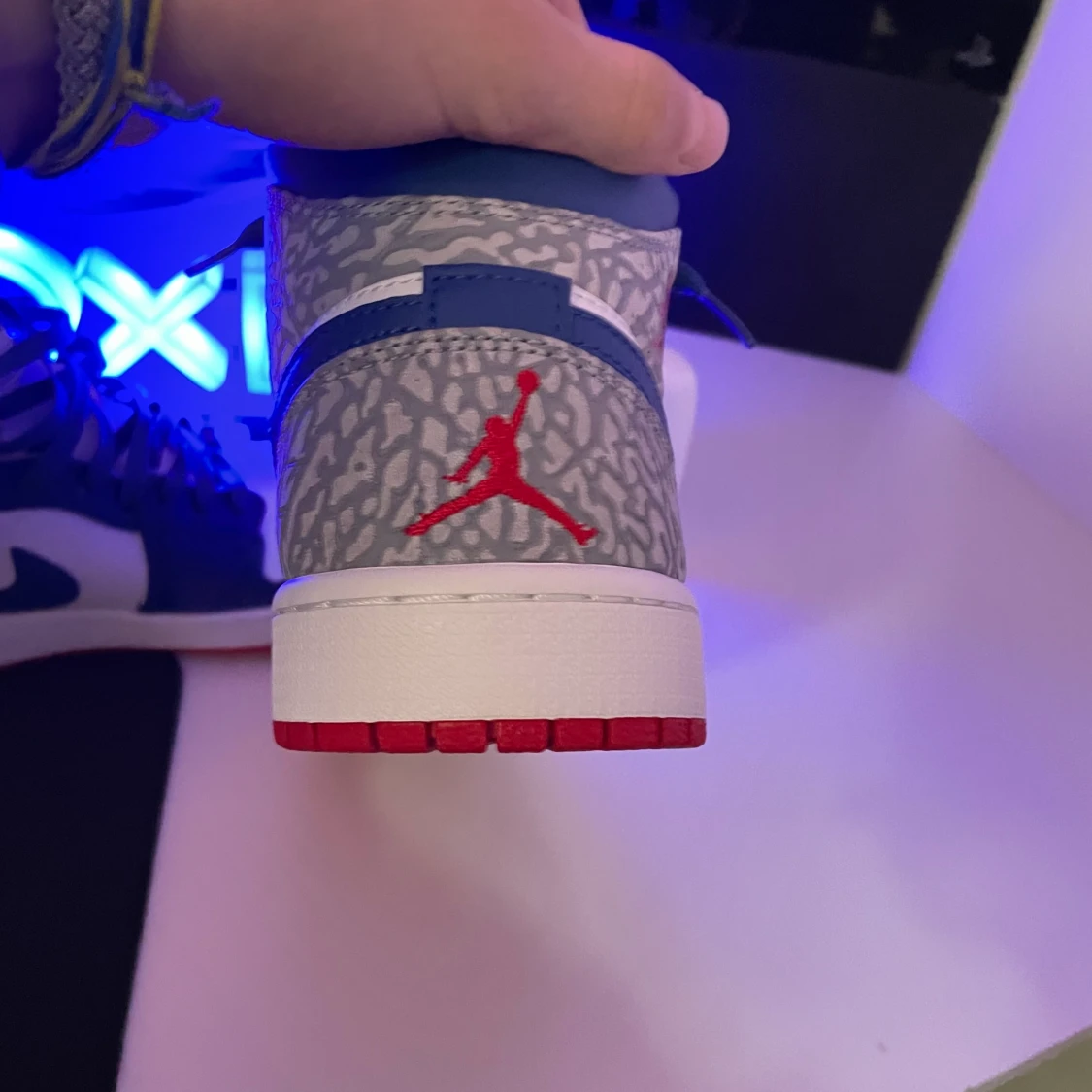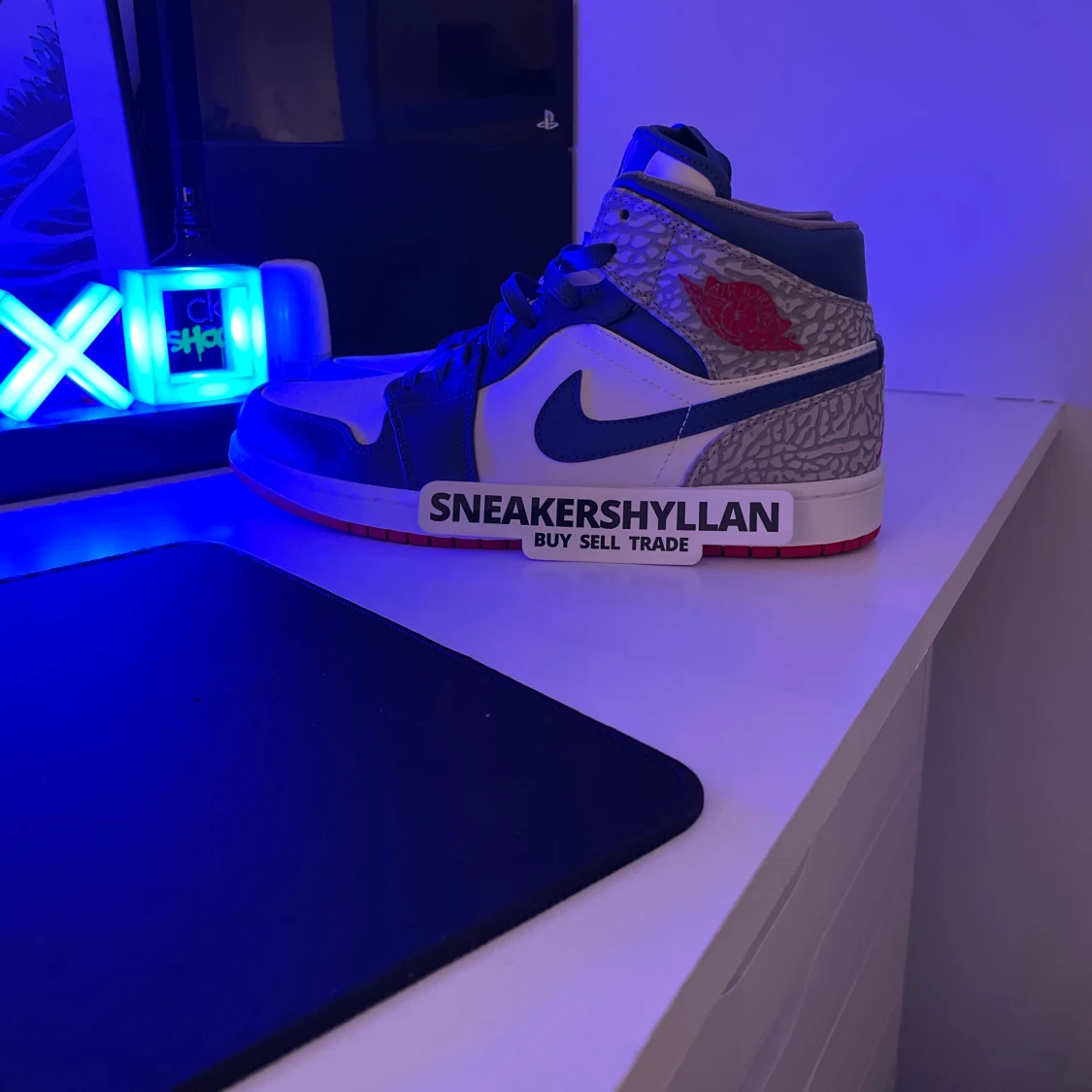 Ett par Jordan 1 mid true bleu från 2013 som är ds size 43-45 Og box finns inte kvar Skick 10/10