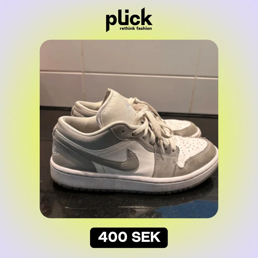 Ett par Jordan 1 low i färgen wolf grey. Bra skick, sällan använda. Saknar däremot innersula, därav det låga priset. Orginallåda medföljer.