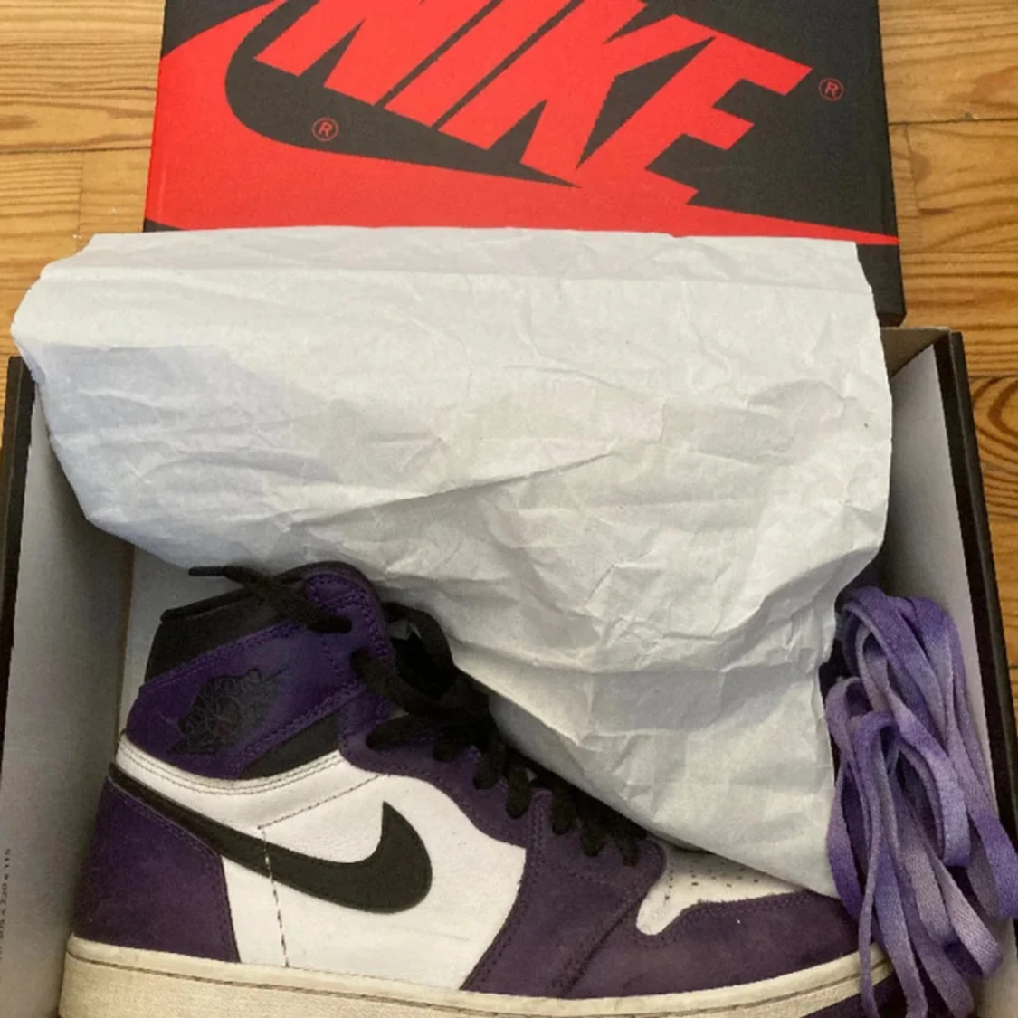 Säljer mina jordan 1 court purple pga att dom är för små. Skick 8/10. Skriv för fler bilder. Pris kan diskuteras.
