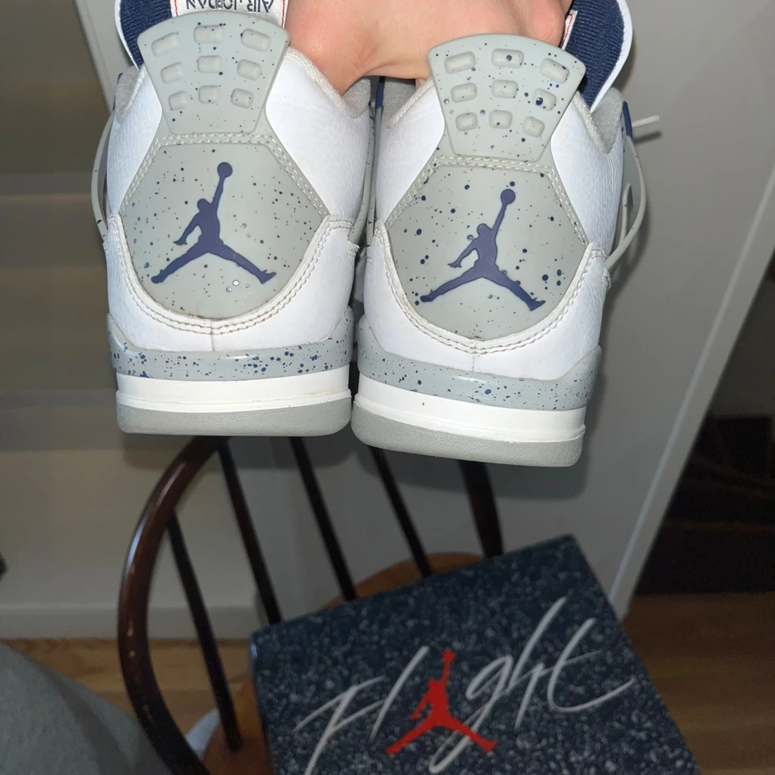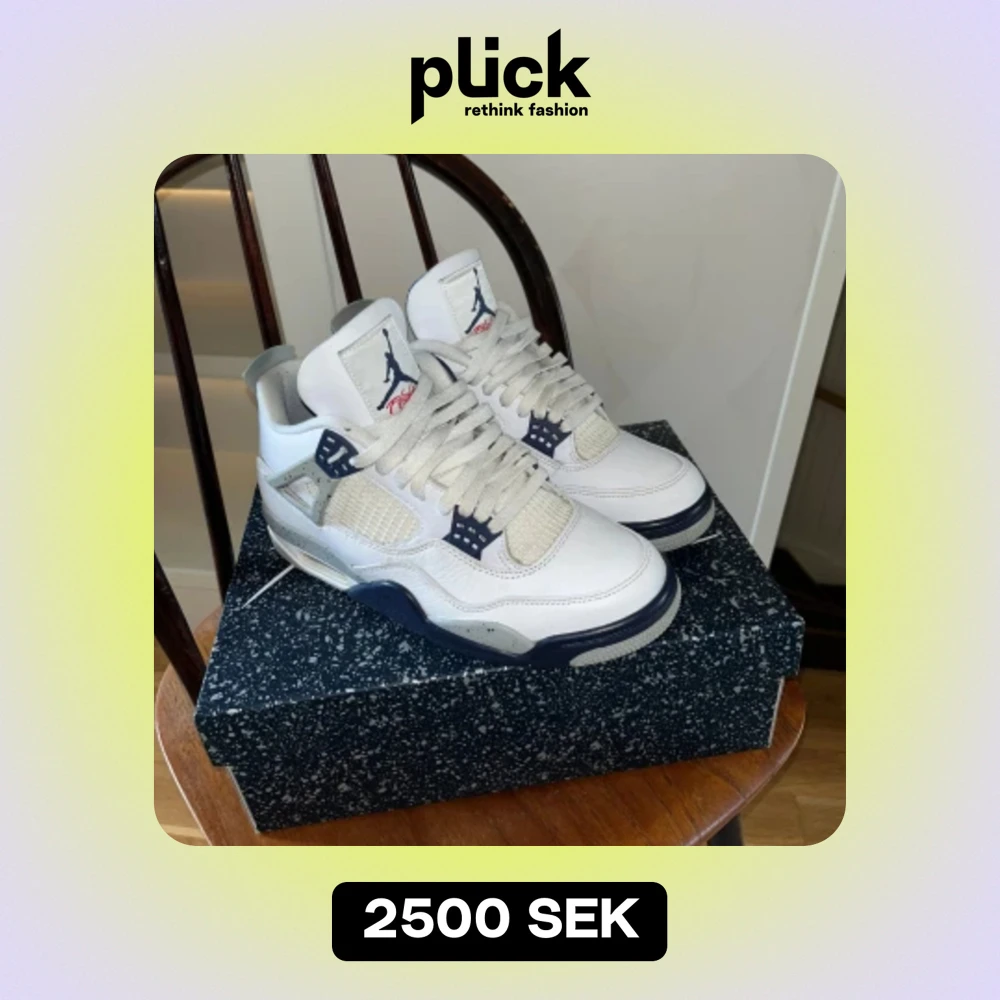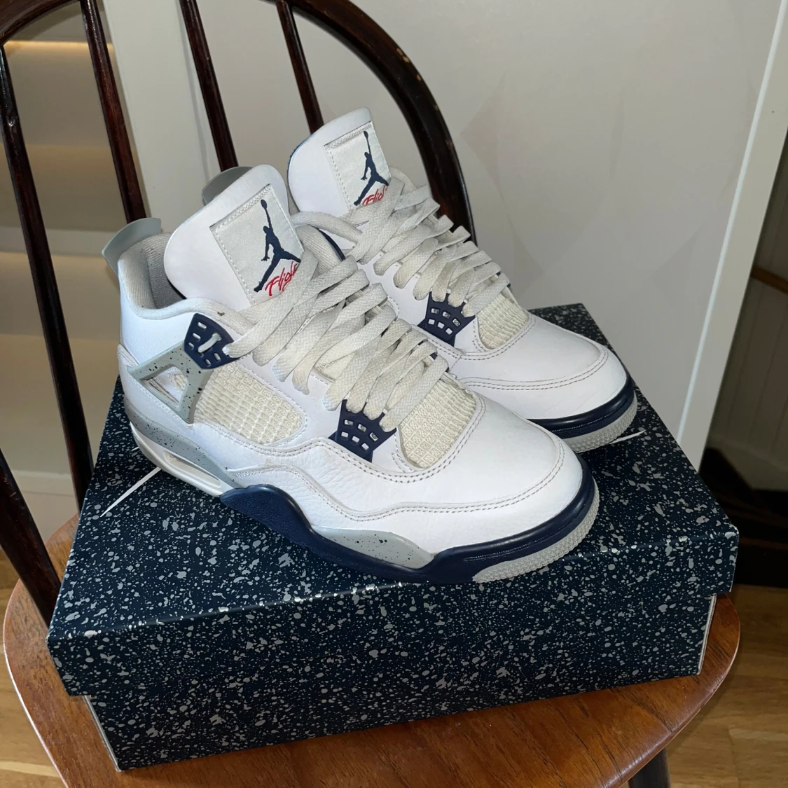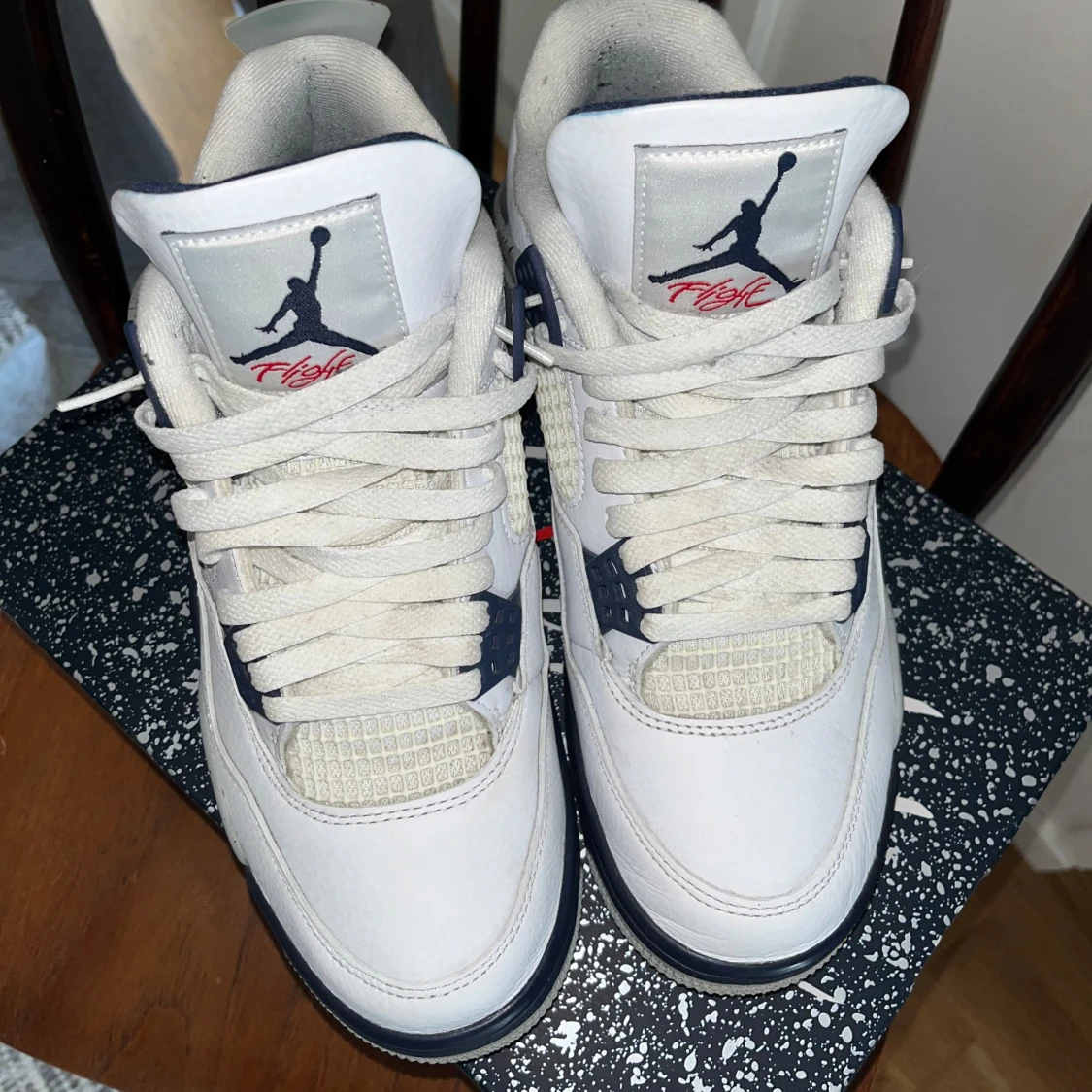 Jordan 4 Midnight Navy, köpta på release date i butik. Använt fåtal gånger. Skolåda ingår.