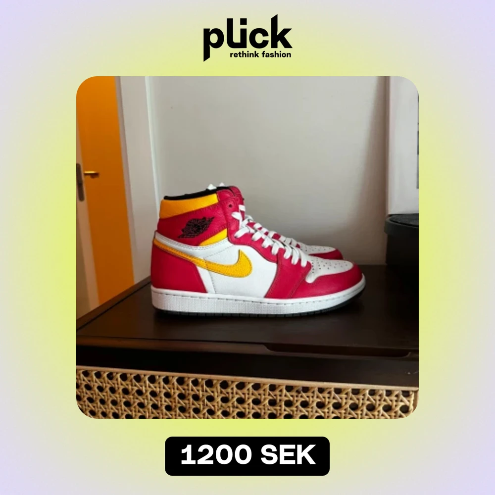 Säljer ett par Nike Air Jordan 1 Retro High OG 'light fusion red' i storlek 42. Skorna är i gott skick och har endast använts ett fåtal gånger.