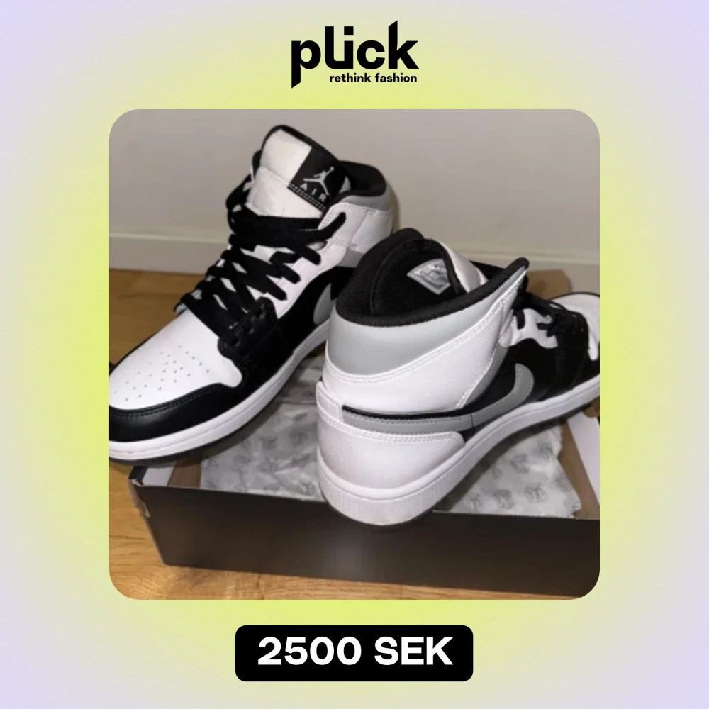 Air Jordan 1 Mid (black/white/grey) väldigt eftertraktade som är svåra att få tag i. Endast använd en gång. I princip helt nya. Storlek 43.