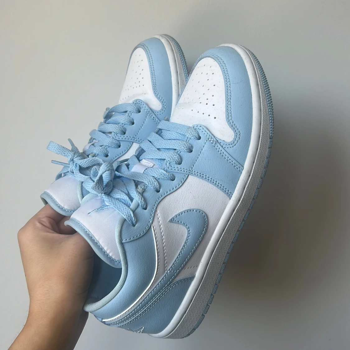 Säljer ett par Nike Jordan 1 i ”aluminium low”. 🩵 Köpta från Merchsweden och är använda men i bra skick.