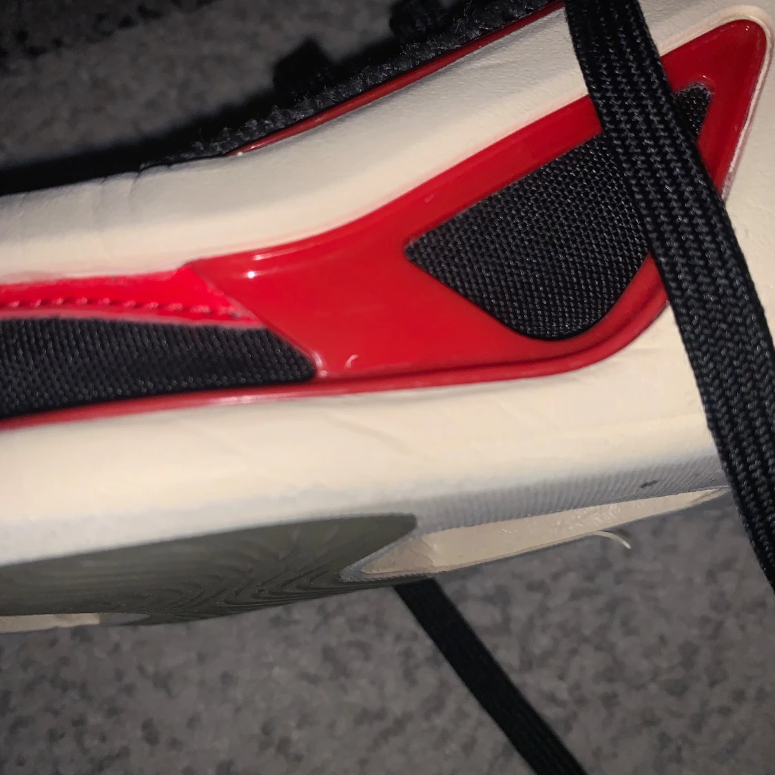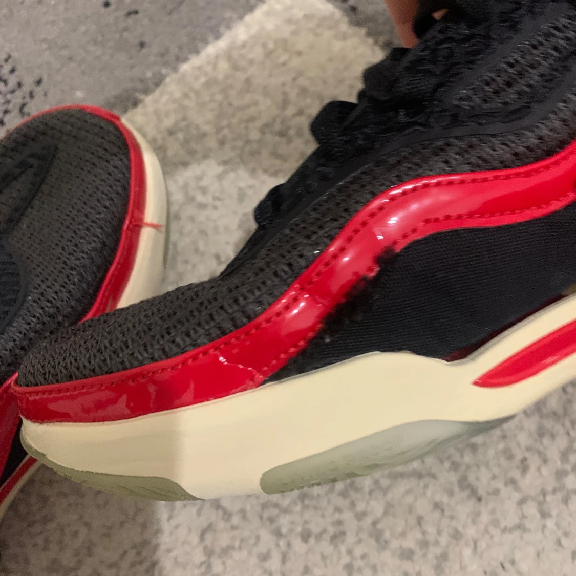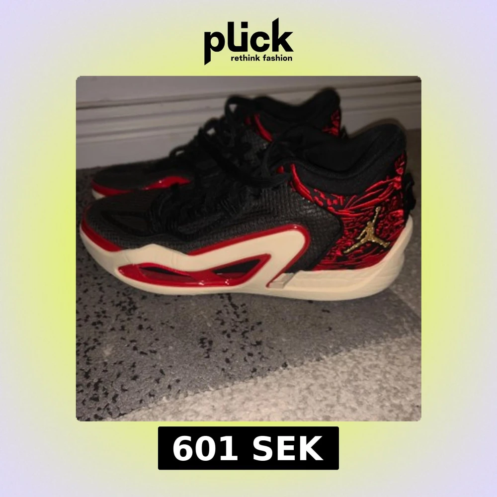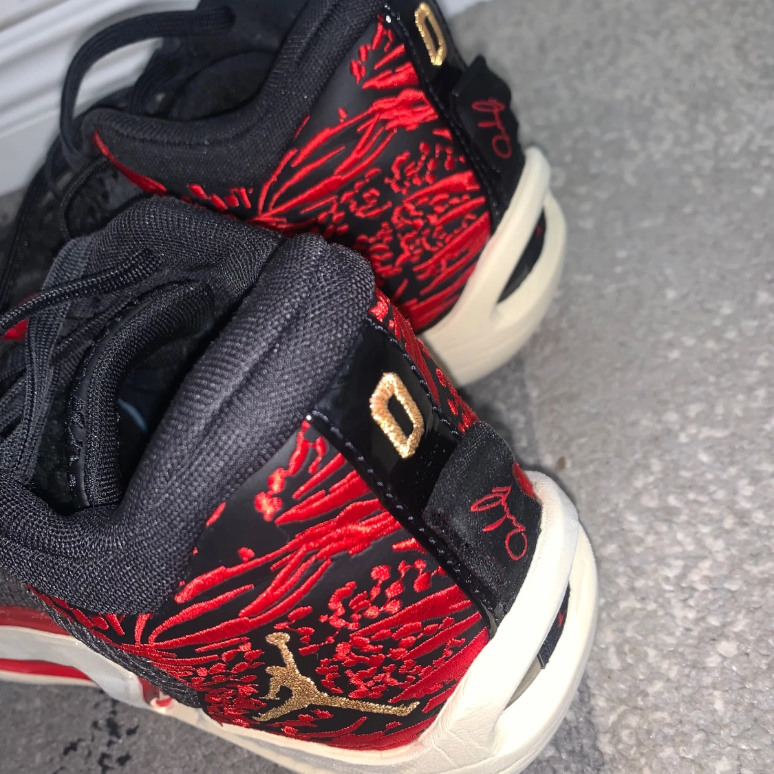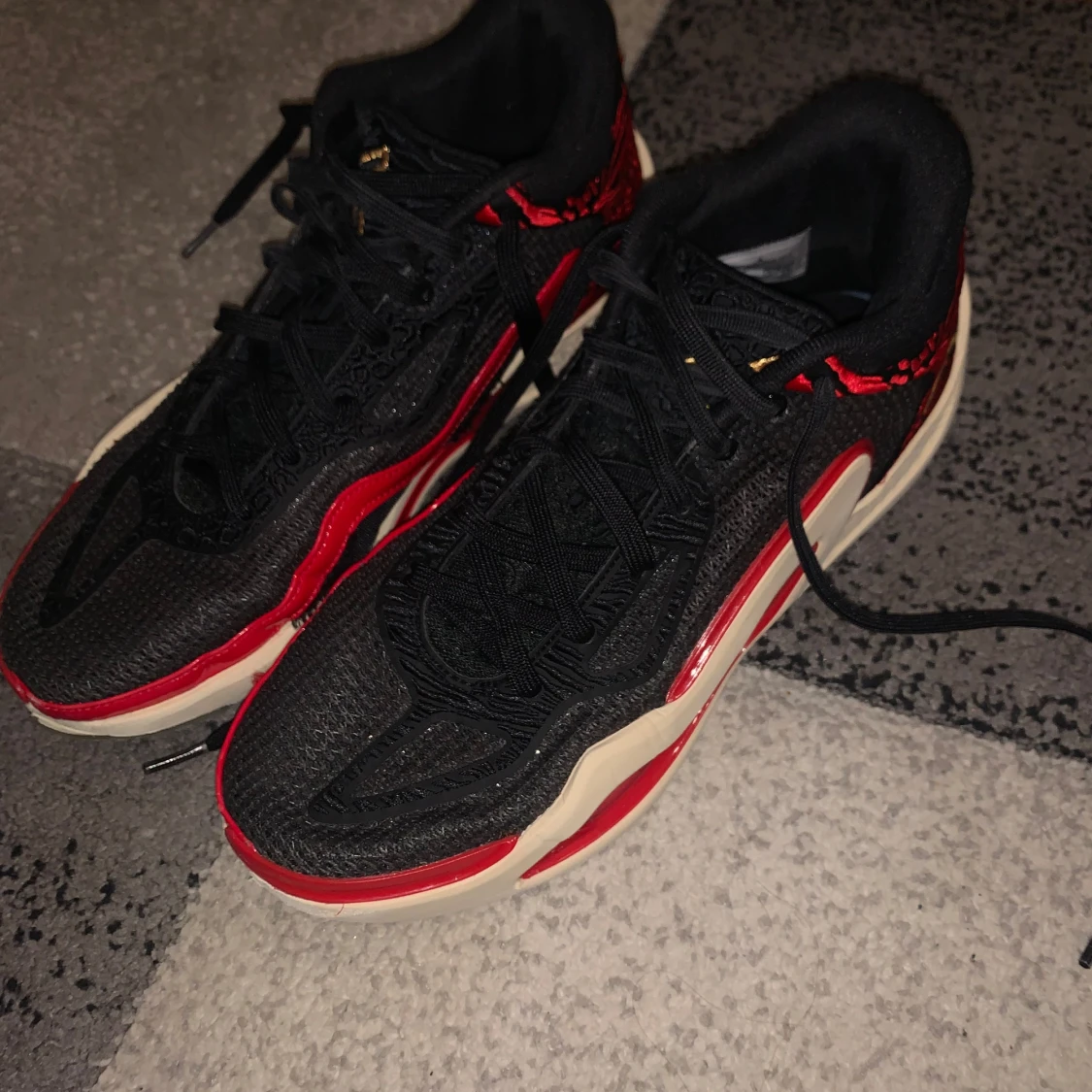 Snygga sneakers i svart och rött med gulddetaljer. Skorna har ett unikt mönster och snörning. Perfekta för den som vill sticka ut med stil.