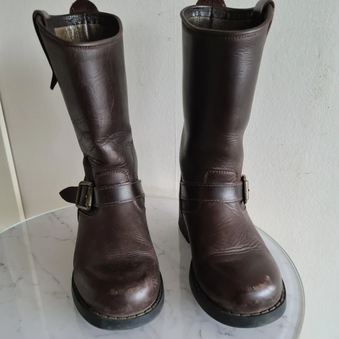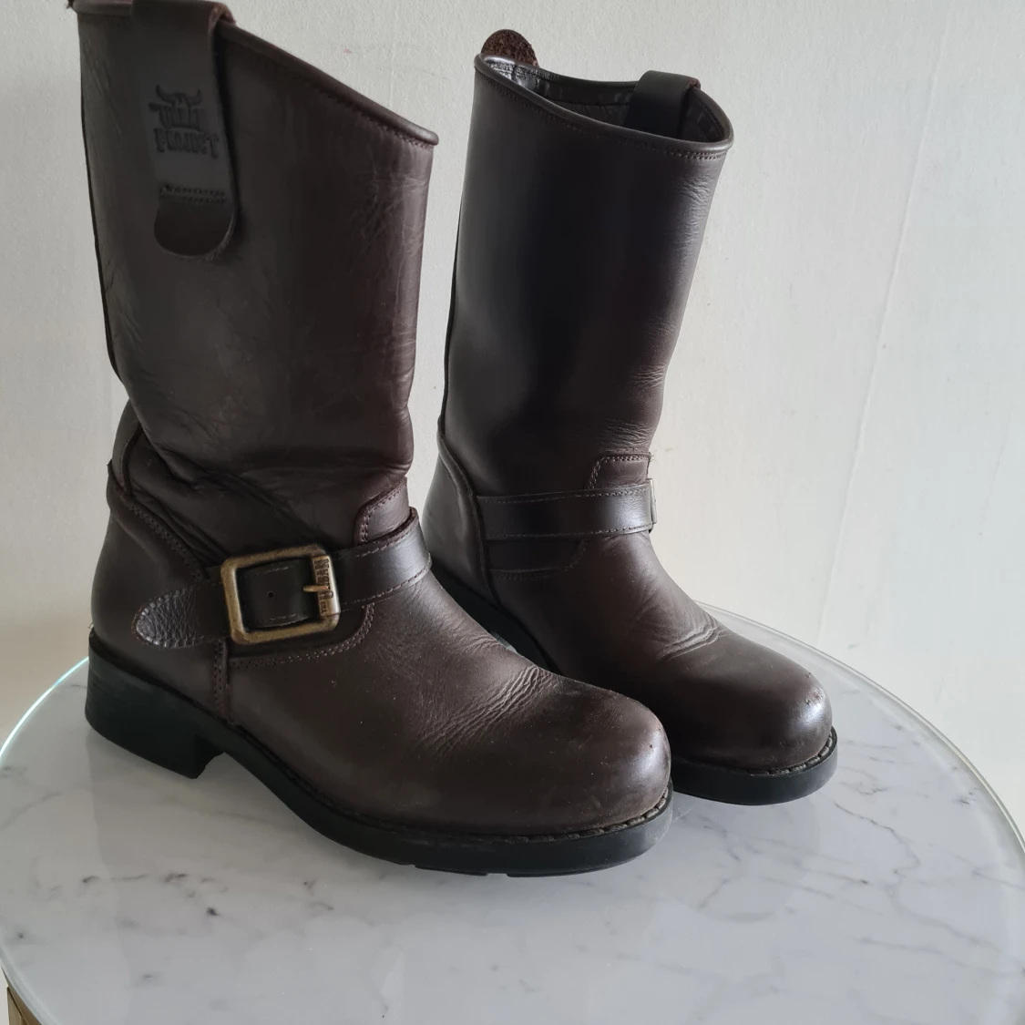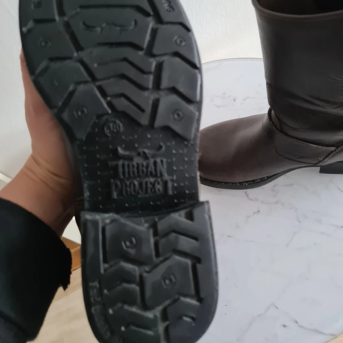 Snygg brun känga från urban projekt. Som syns på ena bilden så är det lite slitage på tårna. Men sulorna är fina samt skon i övrigt! Kan skickas mot frakt.