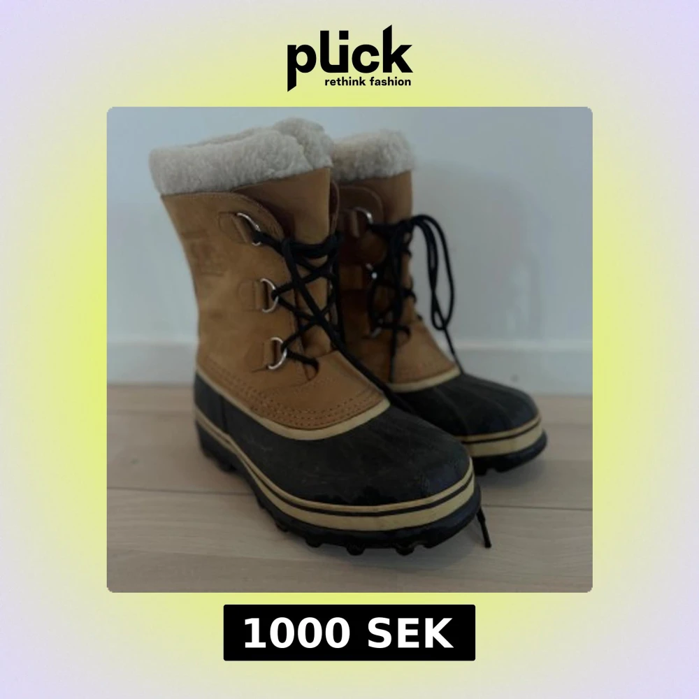 Bruna och svarta vinterboots från Sorel med vitt, fluffigt foder upptill. Skorna har snörning framtill, grov sula och är tillverkade i skinn och gummi. Perfekta för kalla dagar när du vill hålla fötterna varma och torra.