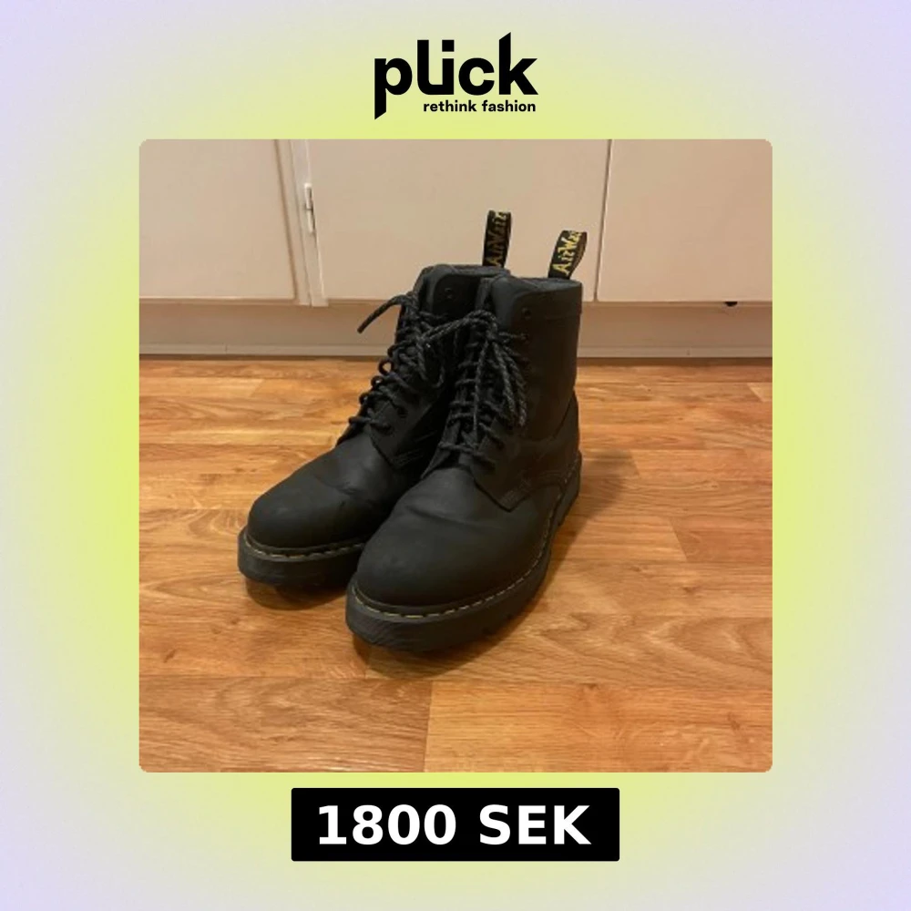 Knappt använda Klassiska svarta Dr. Martens boots med snörning och grov sula. Vattentäta! Skorna har rund tå, gula sömmar och dragflik med logga baktill. Tillverkade i skinn och syntet, perfekta för dig som vill ha en tidlös stil.