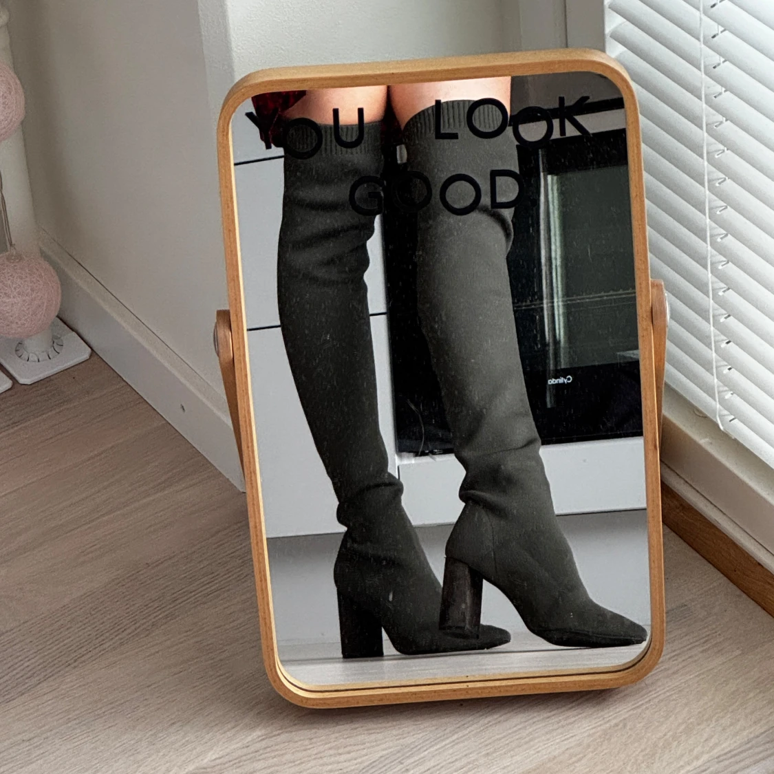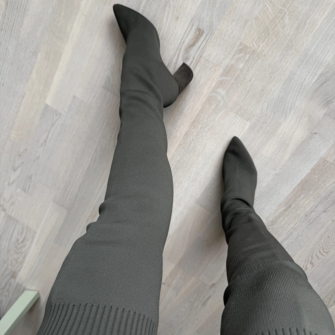 I've worn it once, so it's as good as new! Material is stretchy and the heel boots are not heavy. It's perfect from spring to autumn, breathable material.