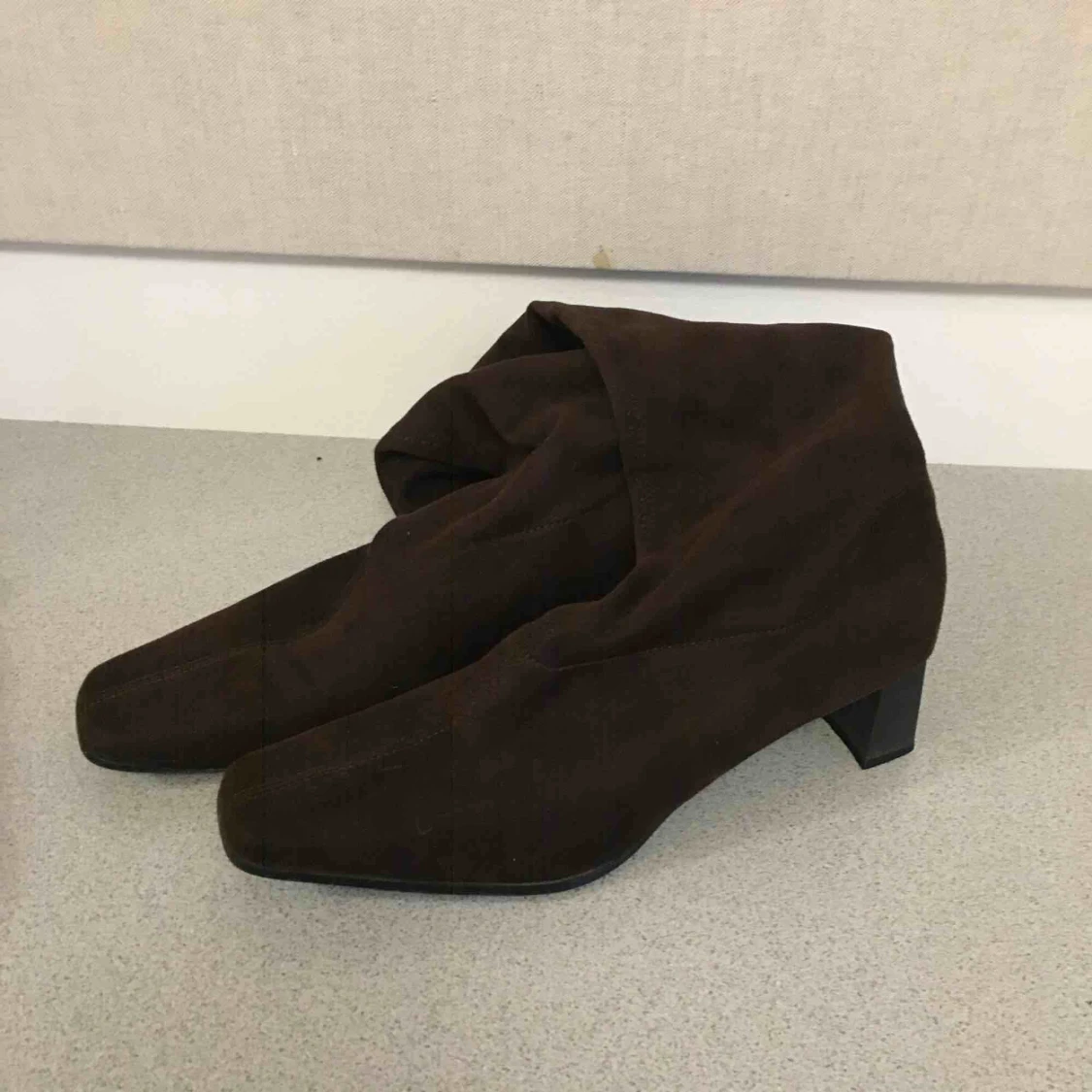 Så coola finskor som går till knät på mig. Nyskick med lägre klack så lätta att gå i. Perfekt nu!!