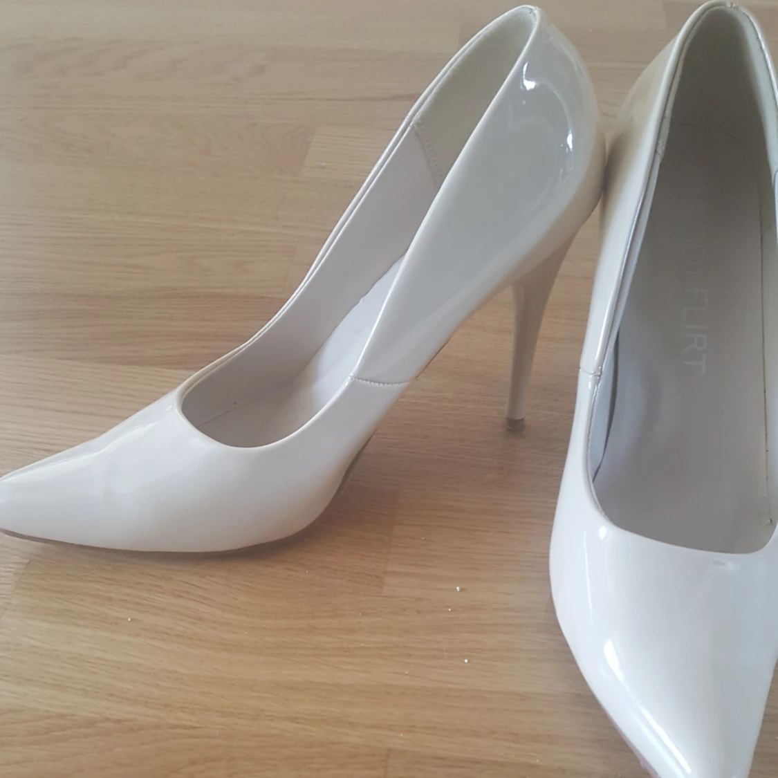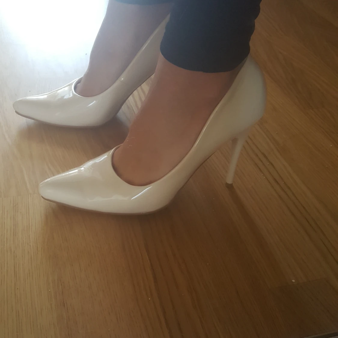 Skor i nude Klack ca 10cm Använda 1 gång och säljes pga av för stora. Kan skickas mot fraktkostnad