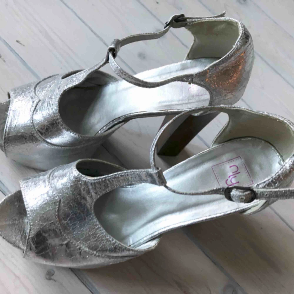 Höga silvriga skor från Nelly med träklack. Använda 1-2 ggr.