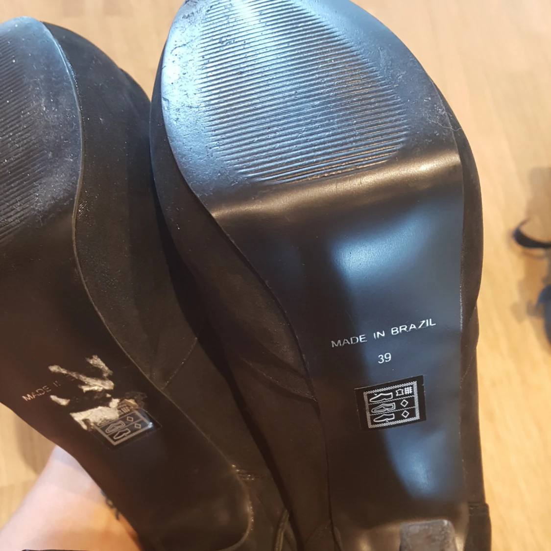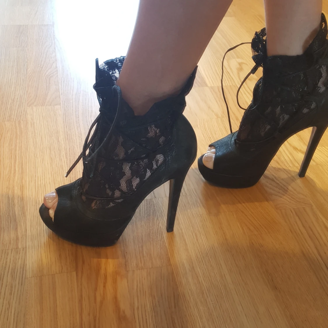 Klack från Office shoes i London Material: svart nubuck och spets samt snörning. Storlek: 39 Användning: endast 1 gång Klackhöjd: ca 11 cm