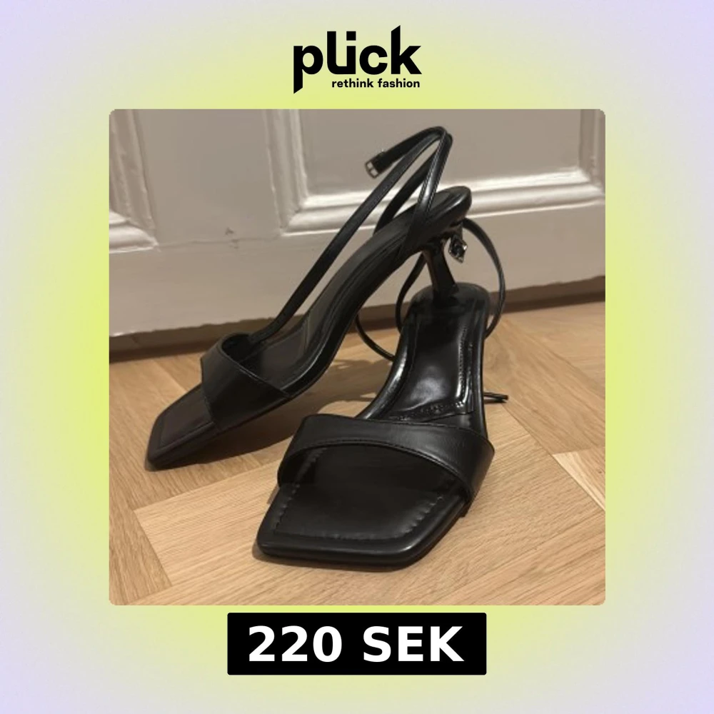 Svarta klackar med öppen tå, super fina och aldrig anväda! Ungefär 2cm klass storlek 38