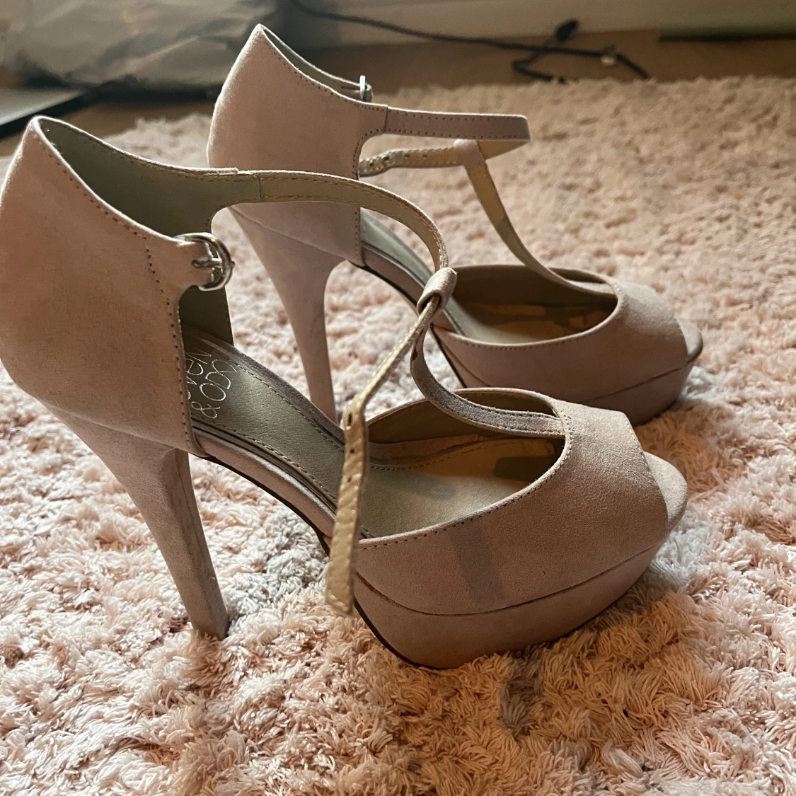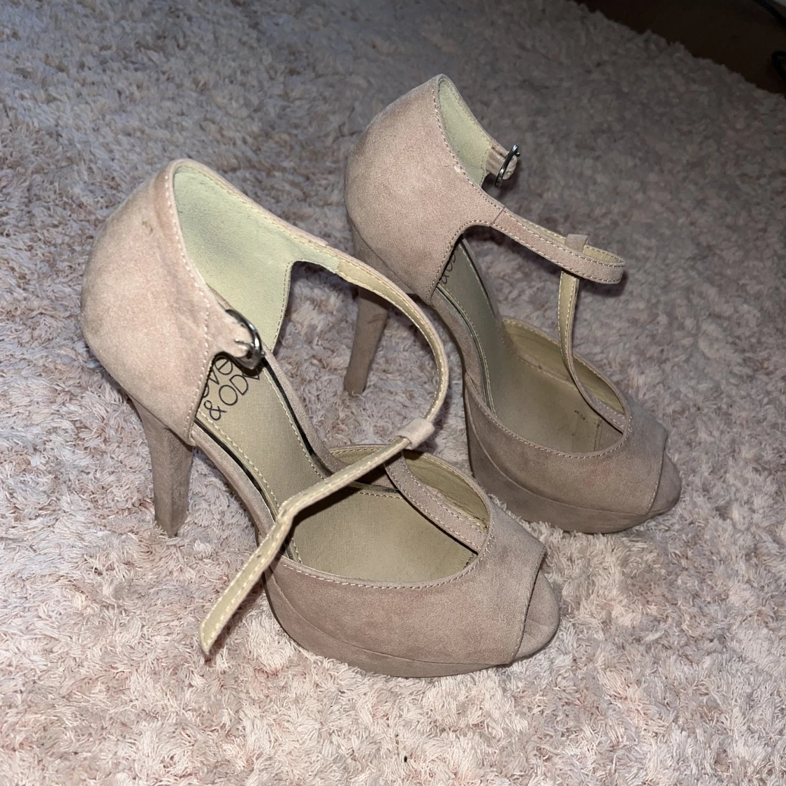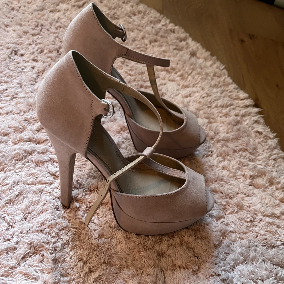 Beiga klackskor i storlek 36. Använda 1 gång. Är i mycket fint skick.