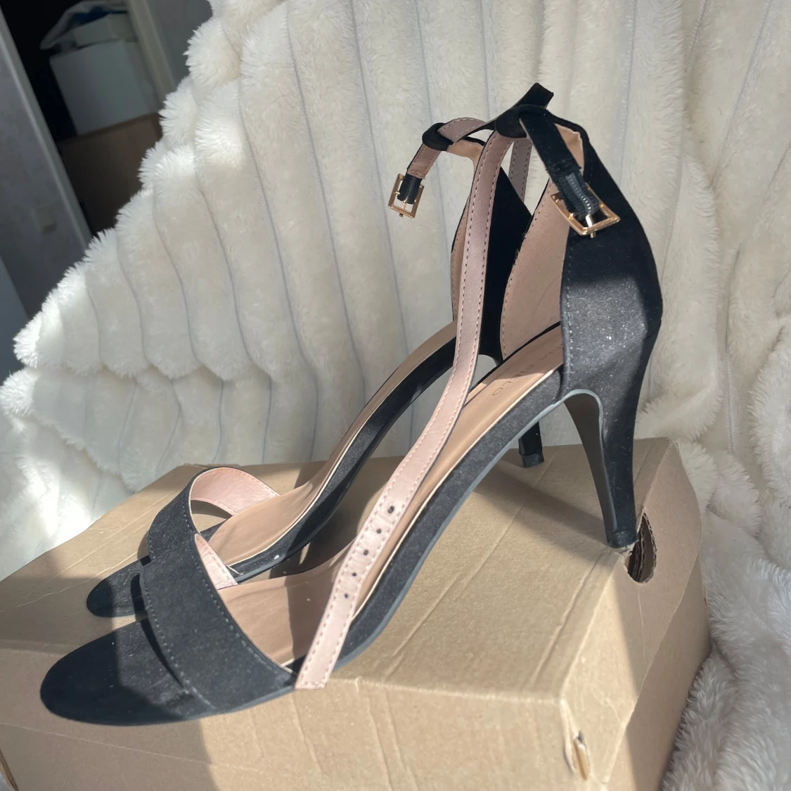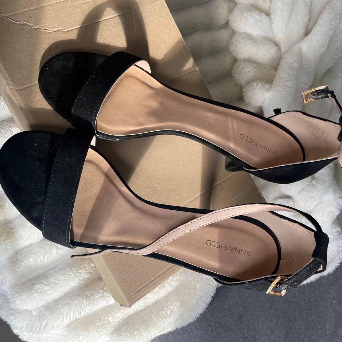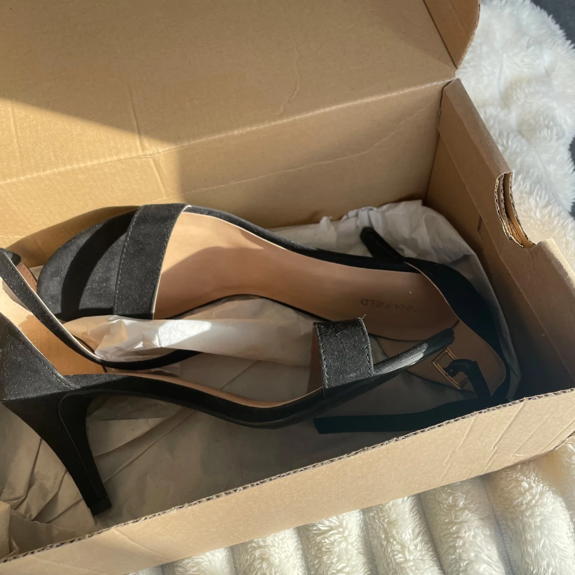 Helt nya oanvända klackar från Anna Field i mocka material med kartong