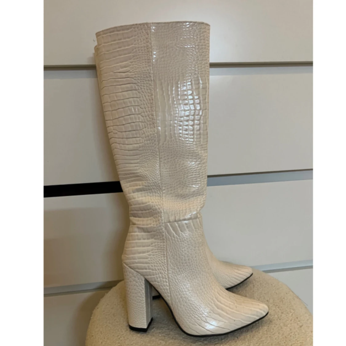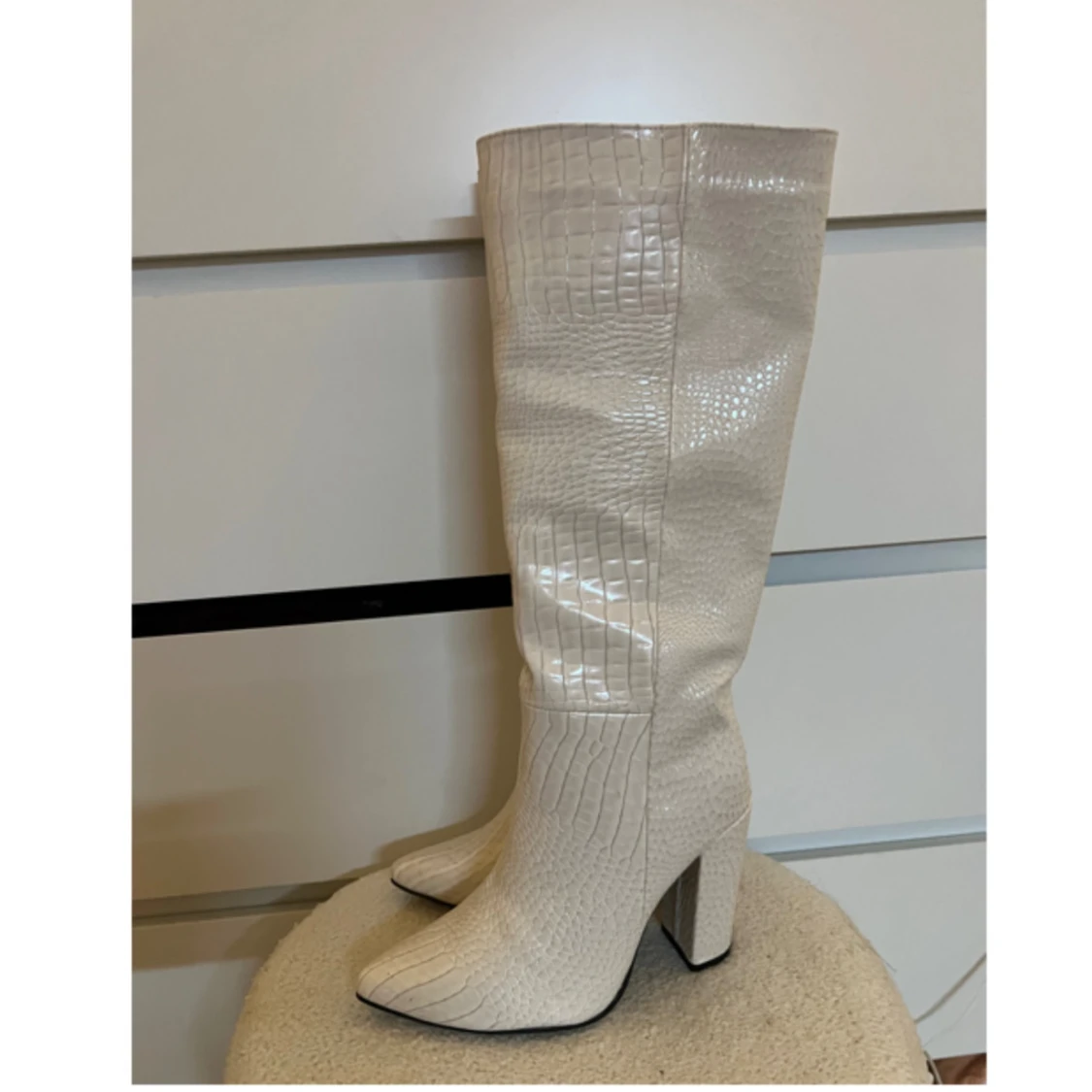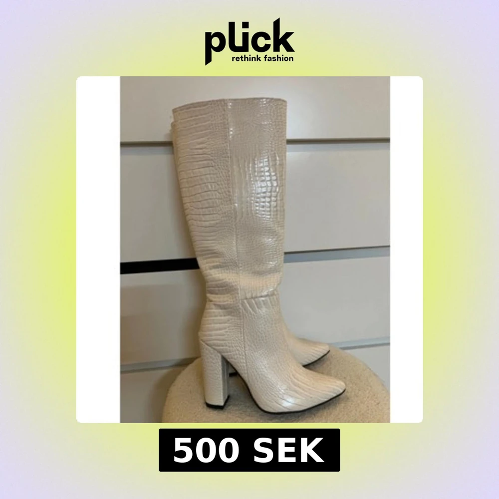 Supersnygga krokodilmönstrade stövlar med klack på cirka 10,5 cm. Skorna har aldrig använts, endast testats. Storlek 38, men eftersom de är små i storleken sitter de perfekt på mig som vanligtvis bär storlek 37 i skor.
