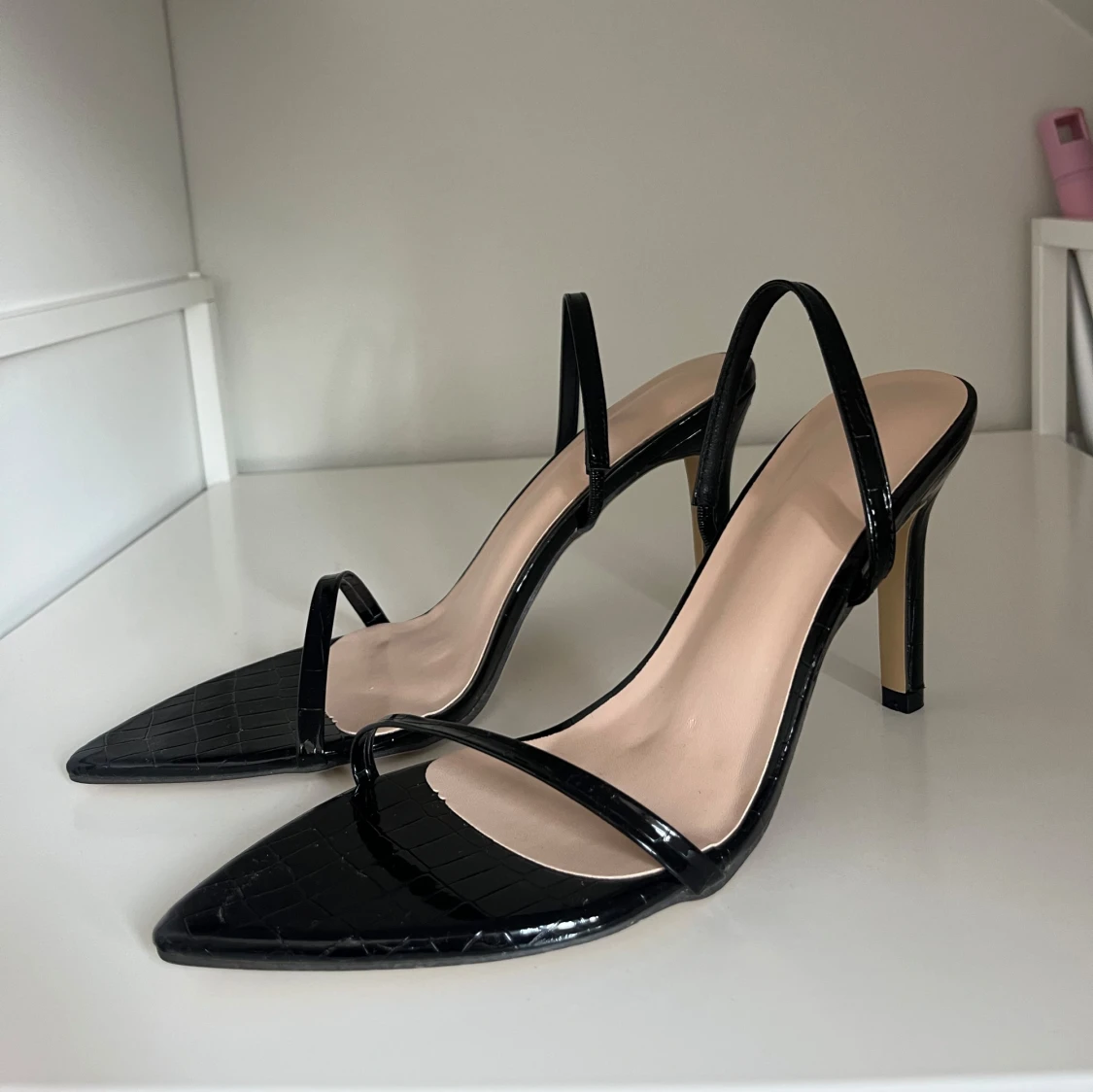 Storlek 38. Använda en gång. Medel klack.