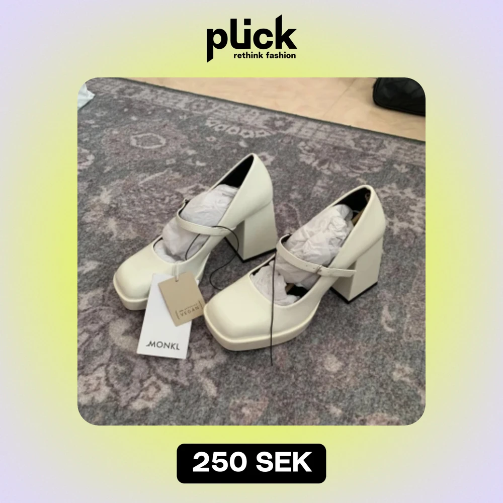 Ett par vita fina Mary Jane platåklackar från Monki. Aldrig använda endast testade. De är storlek 37 men skulle säga att de passar 36 mer. Perfekta till fest, konsert eller bara till vardags! 😚 bara att säga till om du har några frågor 🎀