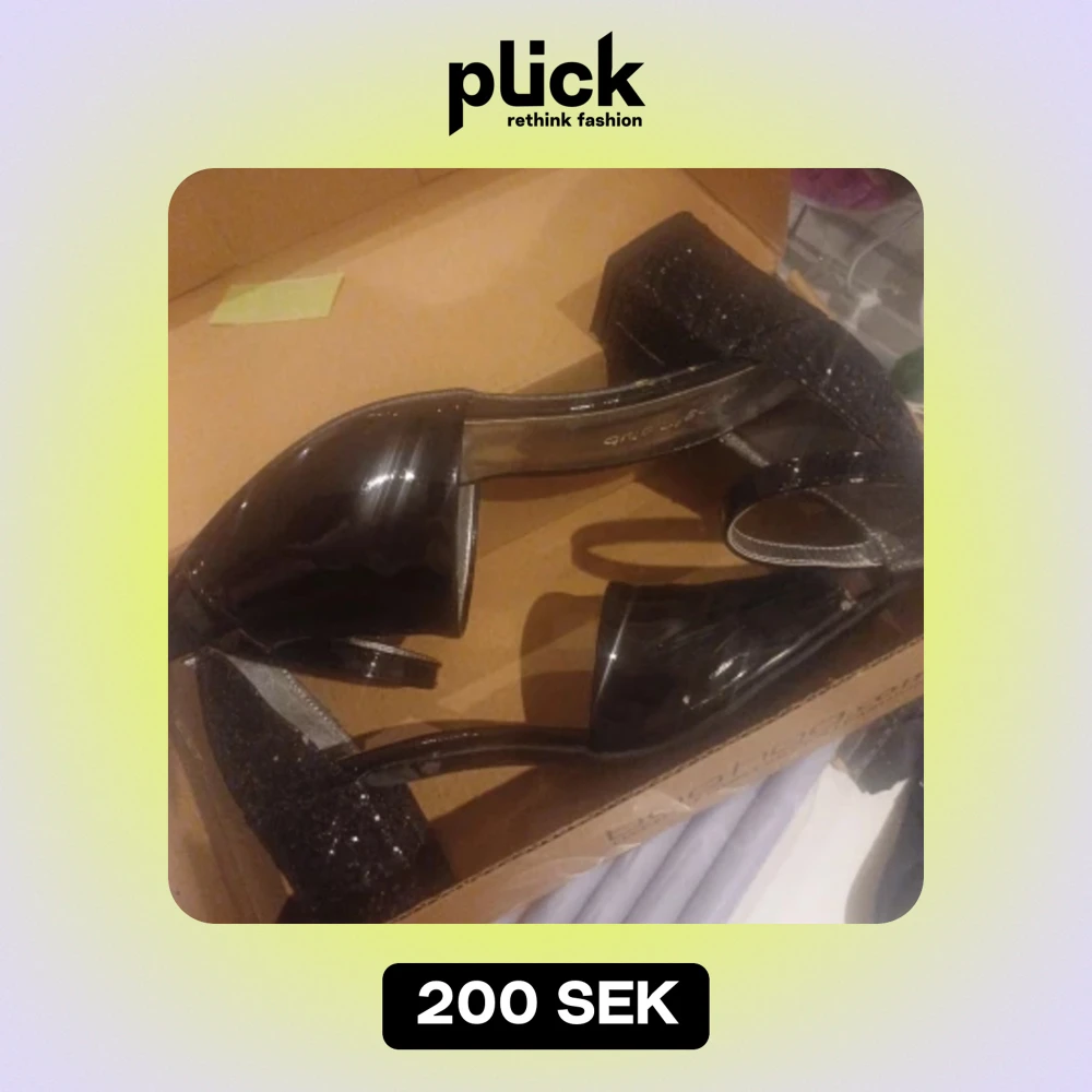 Glansiga o glittriga klackaskor med rätt så låg klack, köpta turkiet