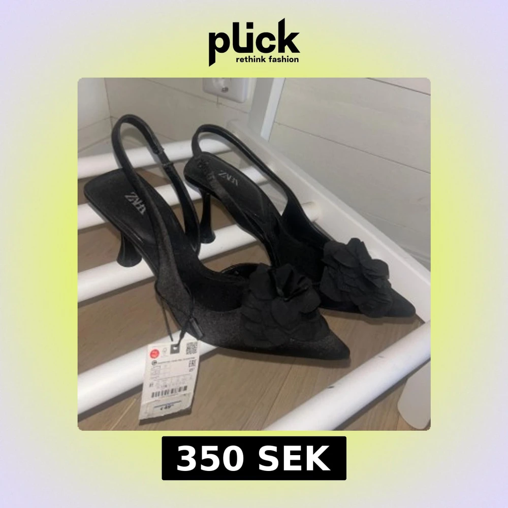 Klackar med spetsig tå med prislapp kvar, endast testade