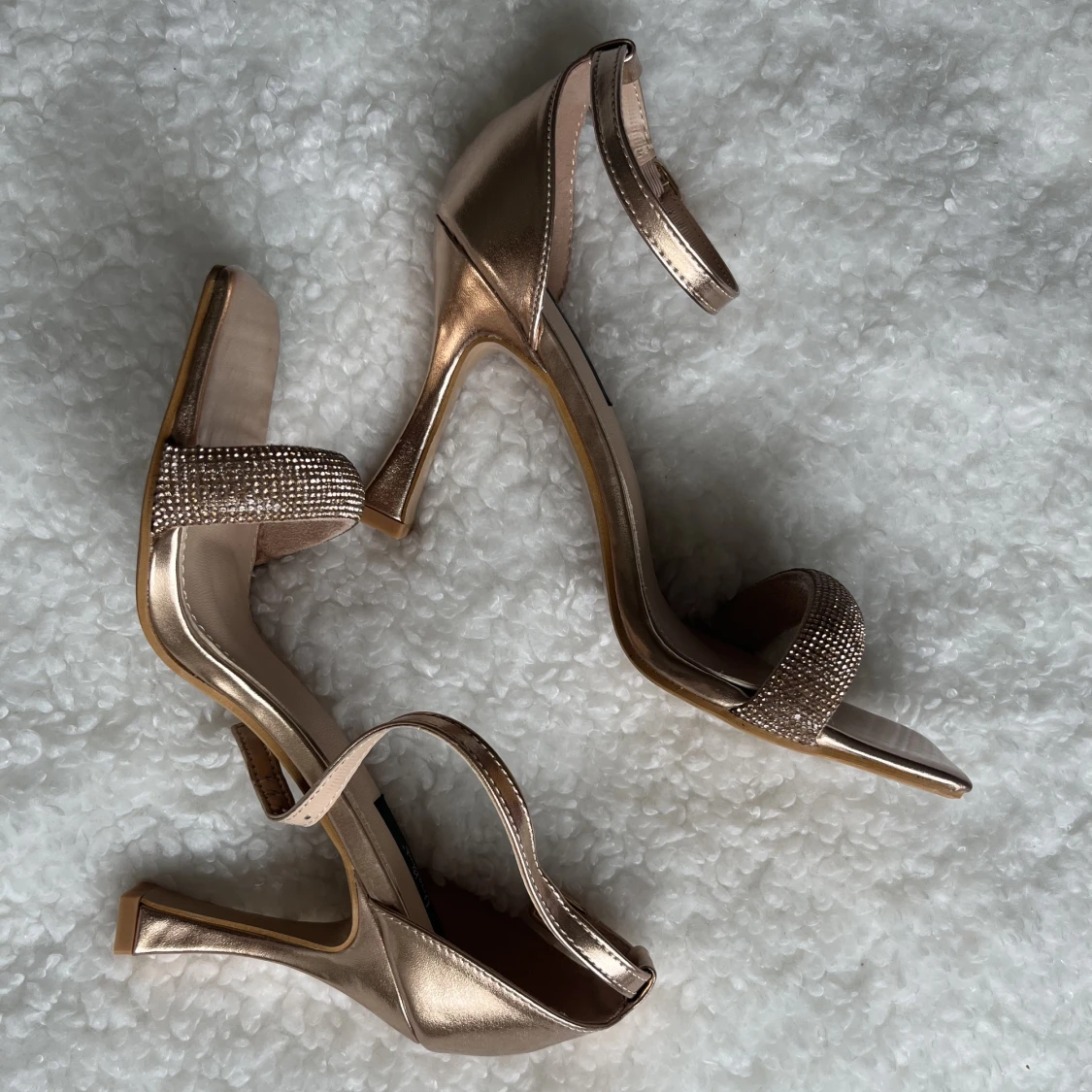 Klackskor i roséguld från Kreta. Oanvända pga för stora. Märke är Vera Blum. Köptes för 800kr. Säljer för 500kr inklusive frakt. Pris kan diskuteras