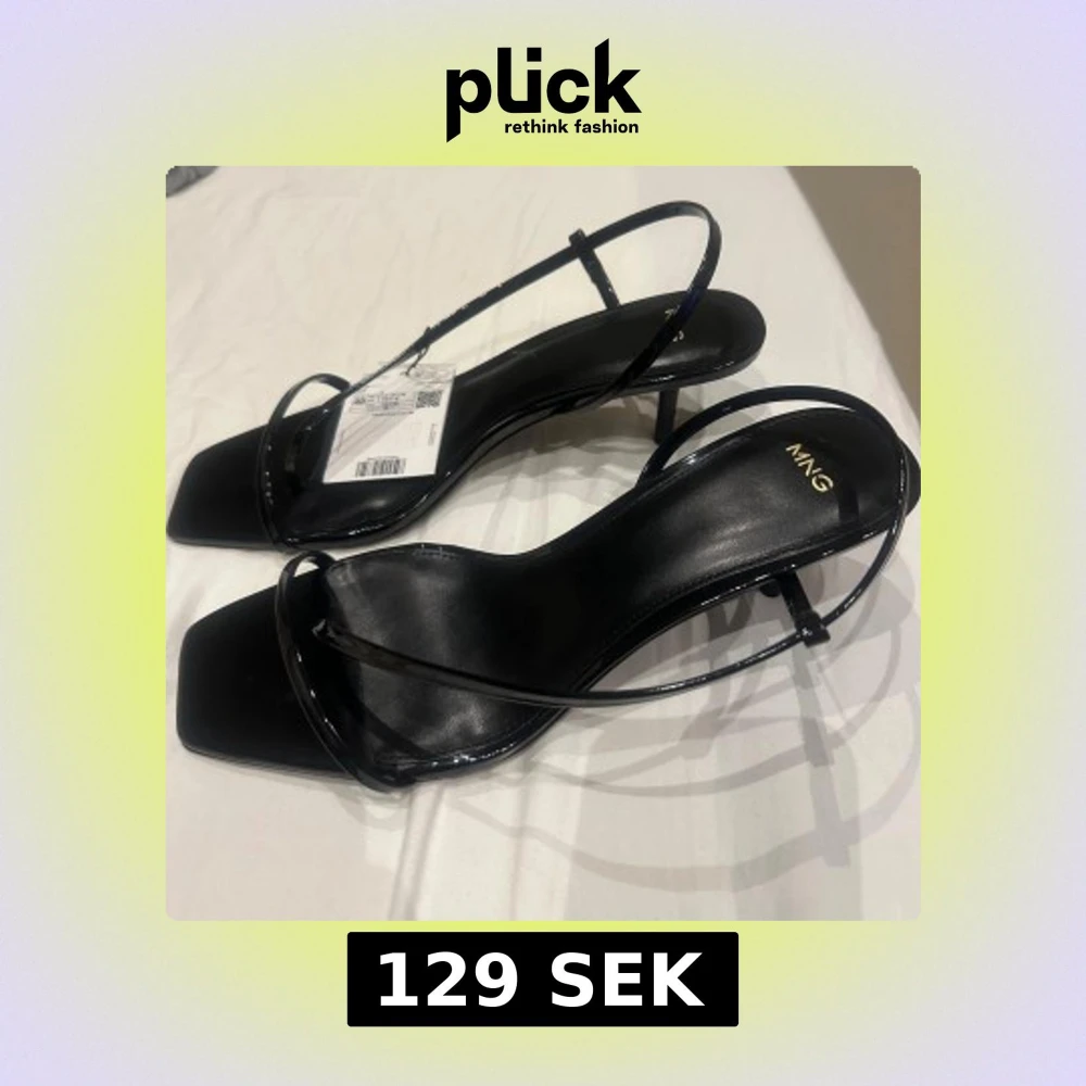 Eleganta helt oanvända svarta sandaler från MNG med smala remmar och fyrkantig tå. Perfekta för en stilren look. Säljer då de var för små för mig.