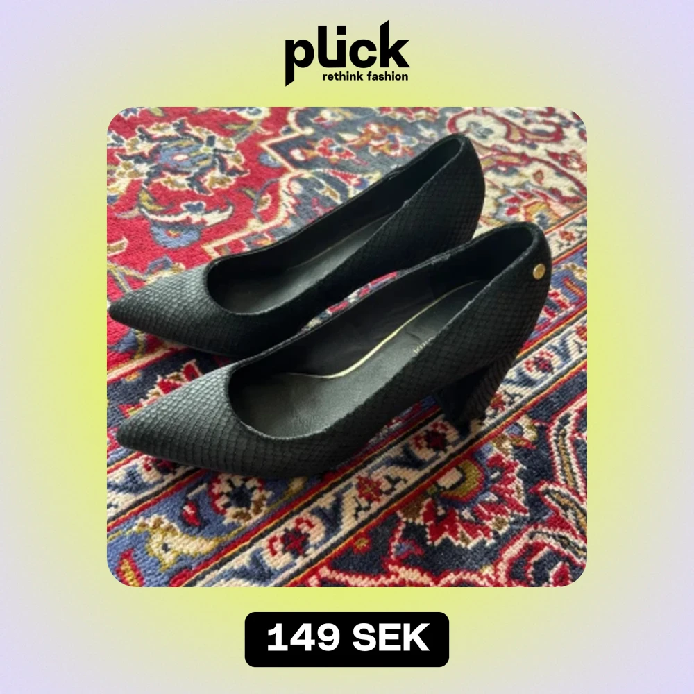 Pumps i modellen ”Pointy Toe” från Agnes Cecilia. Innersula i skinn, ovandels i mocka och yttersida i syntet. Klackhöjd 8 cm. Nypris är 799 kr, säljer för 400.