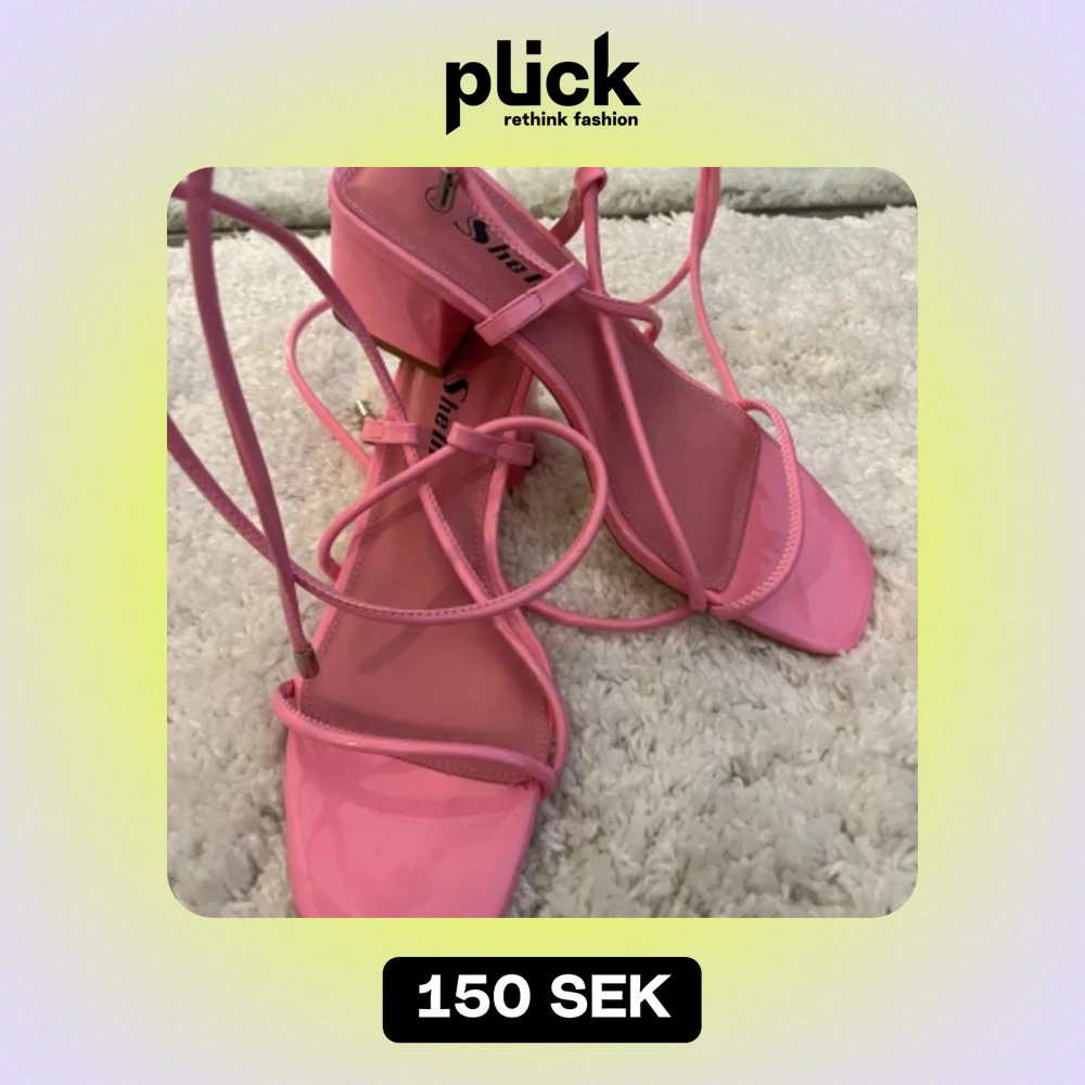 Super fina rosa klackskor från shien med snöre som man kan knyta upp på benet, låg tjock klack satt dom är enkla att gå i