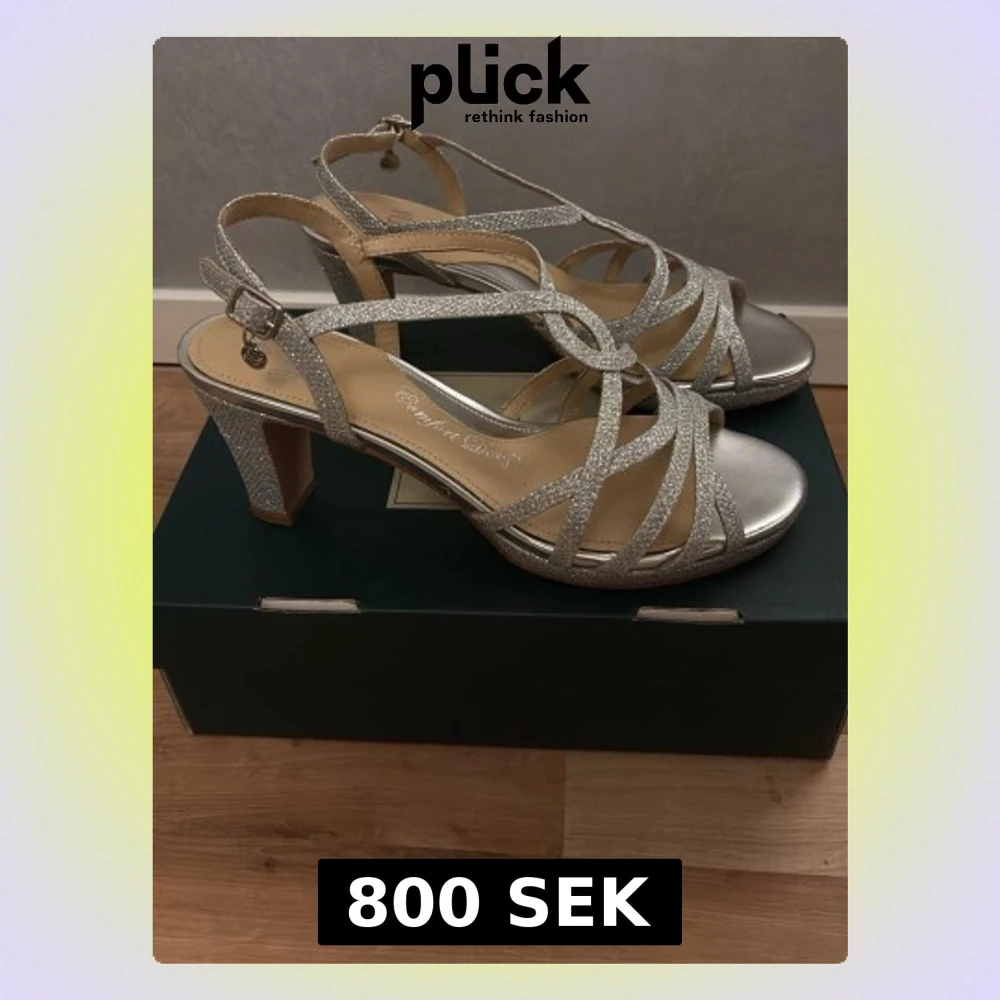 JĂ€ttefina glittriga klackskor som passar till balđ€köpte dom för 999 kr och dom har bara anvĂ€nts en gĂ„ng