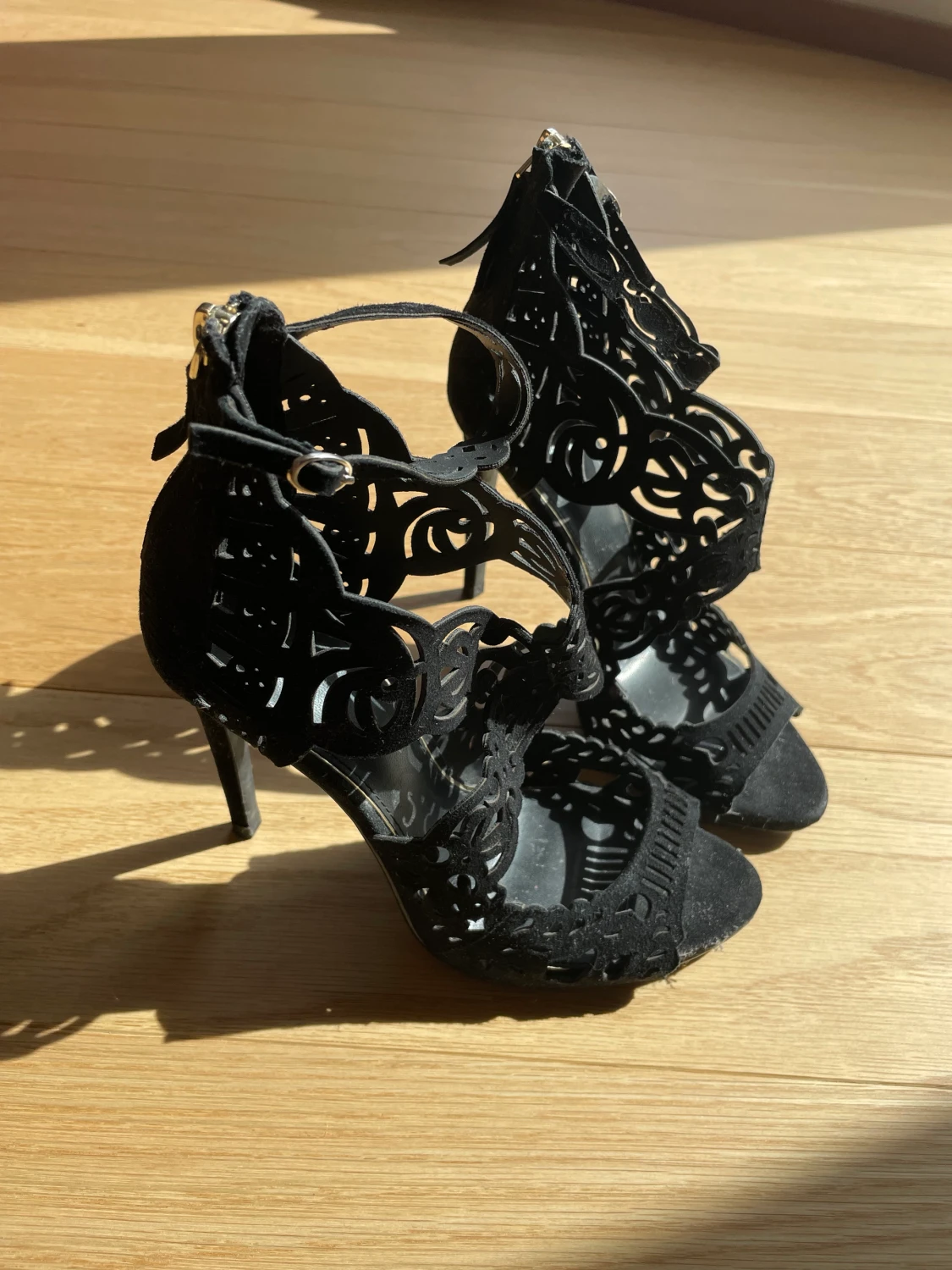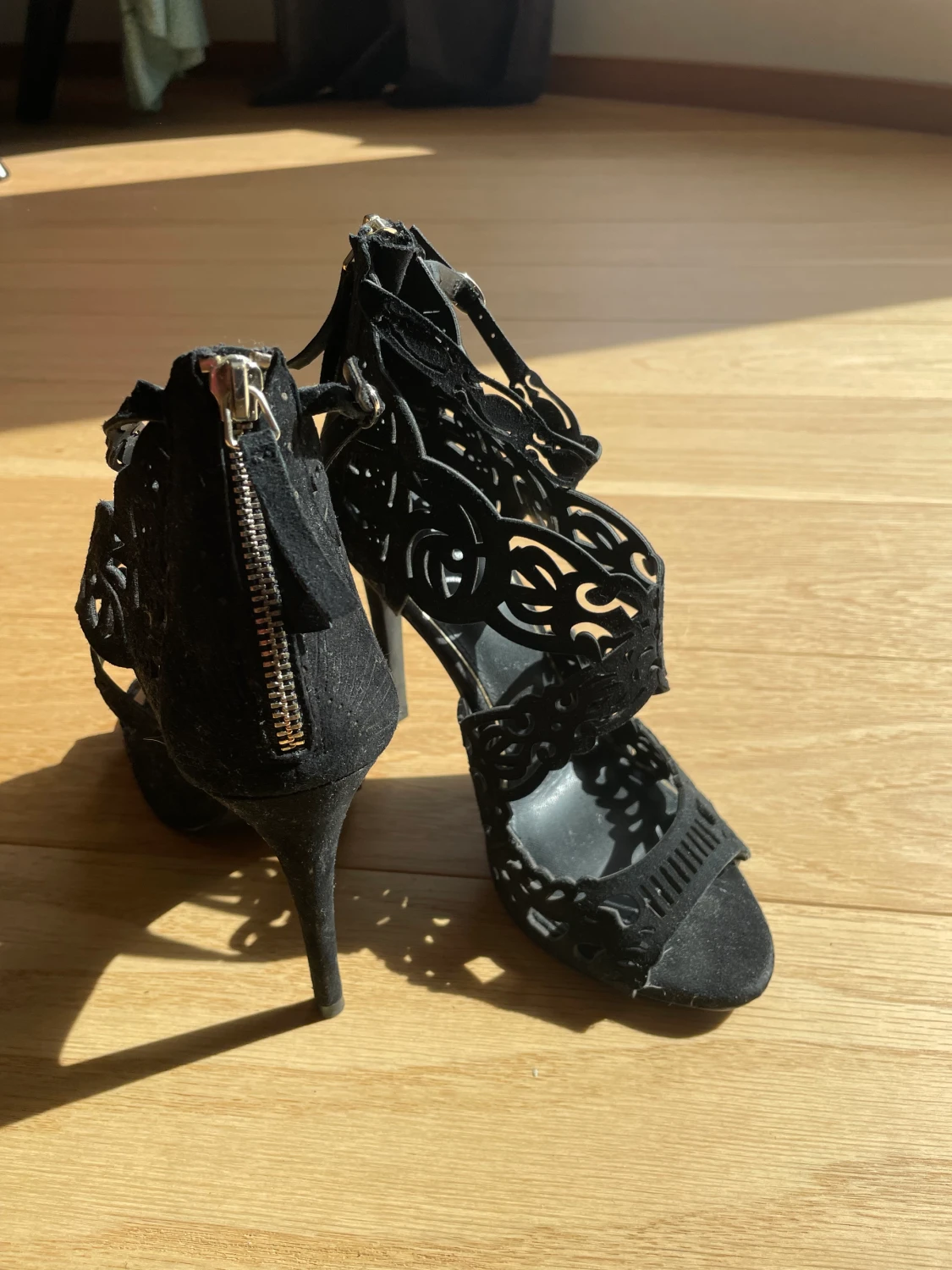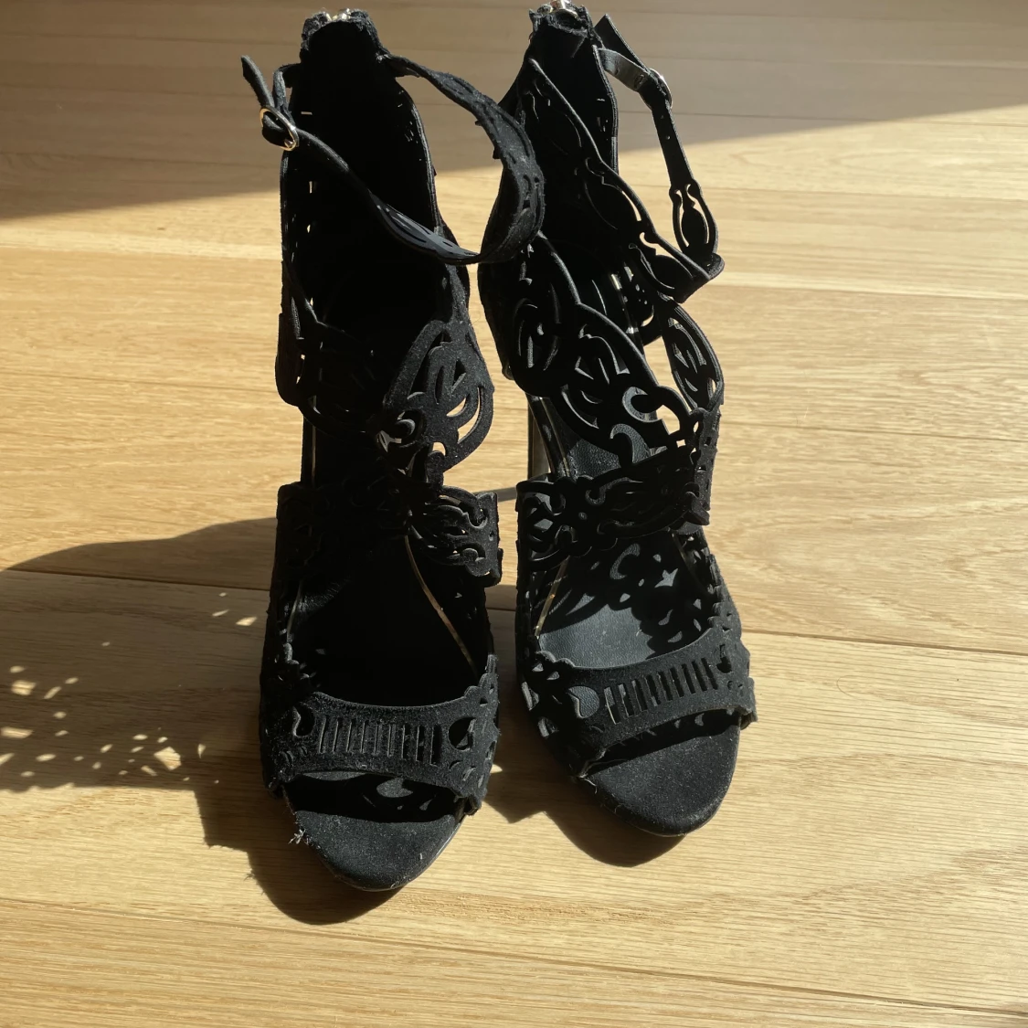 Klackskor i nyskick, använda en gång. 10cm klack. Väldigt festliga skor, bekväma.