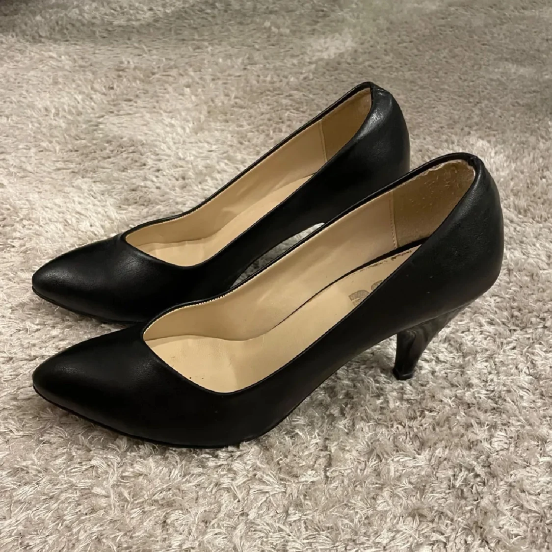 Supersöta klackskor köpt här på Plick! Står storlek 38 men skulle säga att de passar 37🩷 Sulan är lite sliten men resten av skon är i toppskick!