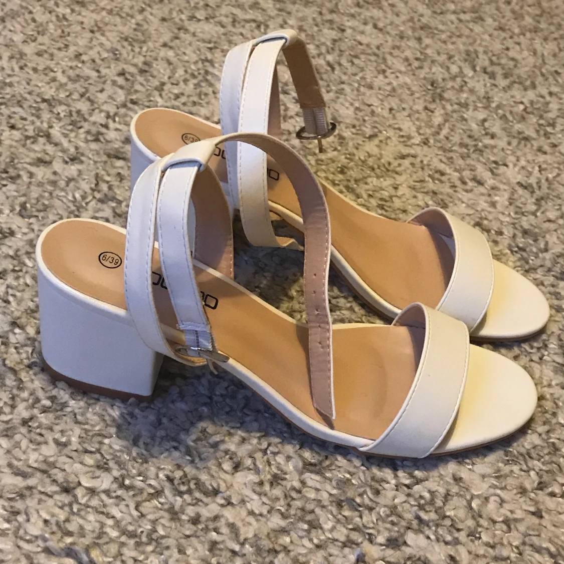 Oanvända sandal-klackar med låg klack. Passar lite smalare fötter och perfekt till sommaren! Storlek 39. 150kr