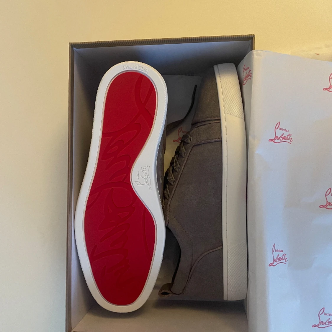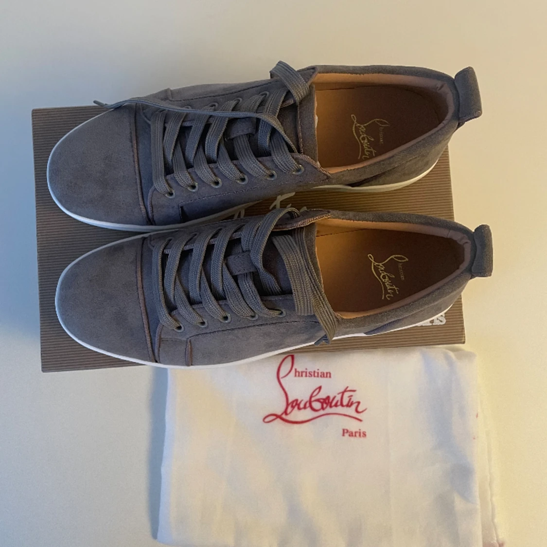 Tjena, säljer ett par snygga gråa Louboutin skor i mycket bra kondition. Kvitto samt box ingår och nypriset för dessa skor är cirka 6500kr. Skriv dm vid intresse. (pris går att diskuteras)