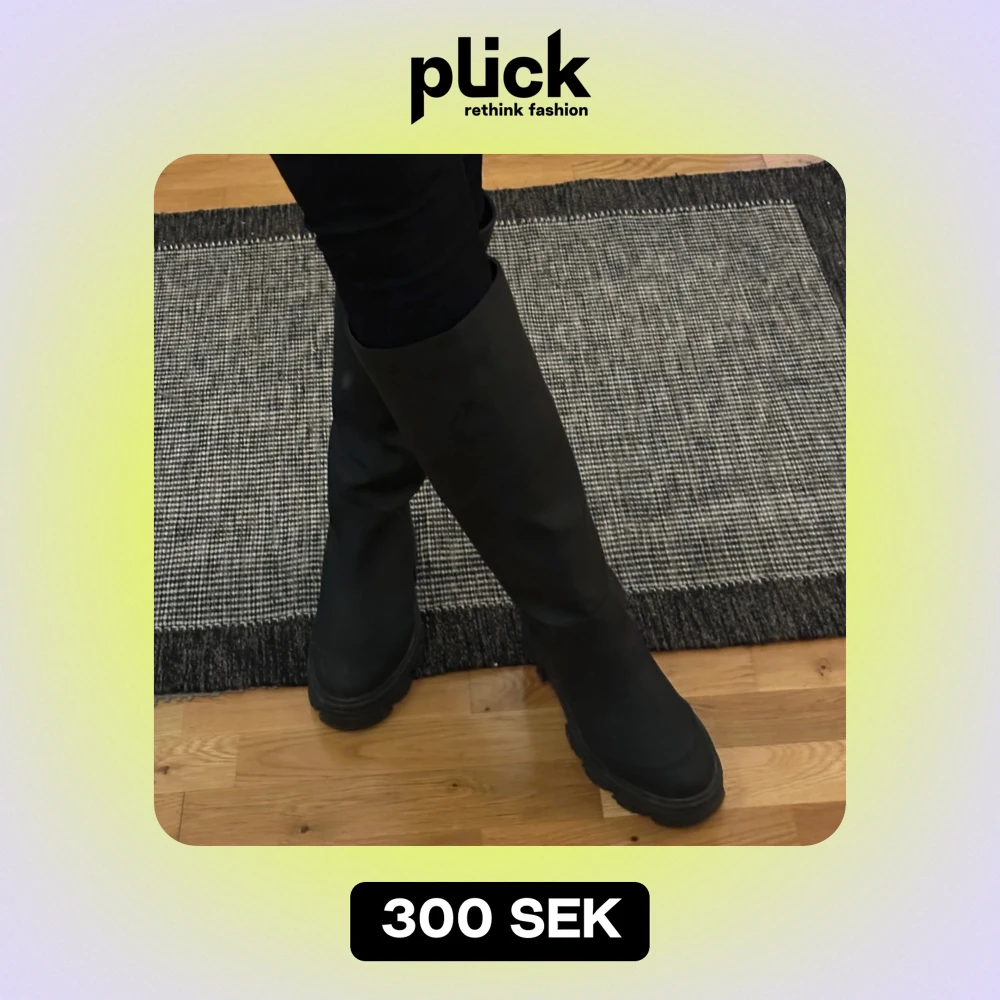 Snygga svarta knähöga boots. Perfekta för höst och vinter. Stilrena och enkla att matcha med olika outfits. Endast använda 3 gånger, ser ut som nya. Köptes för 699 men säljes för 300. Storlek 36🩷