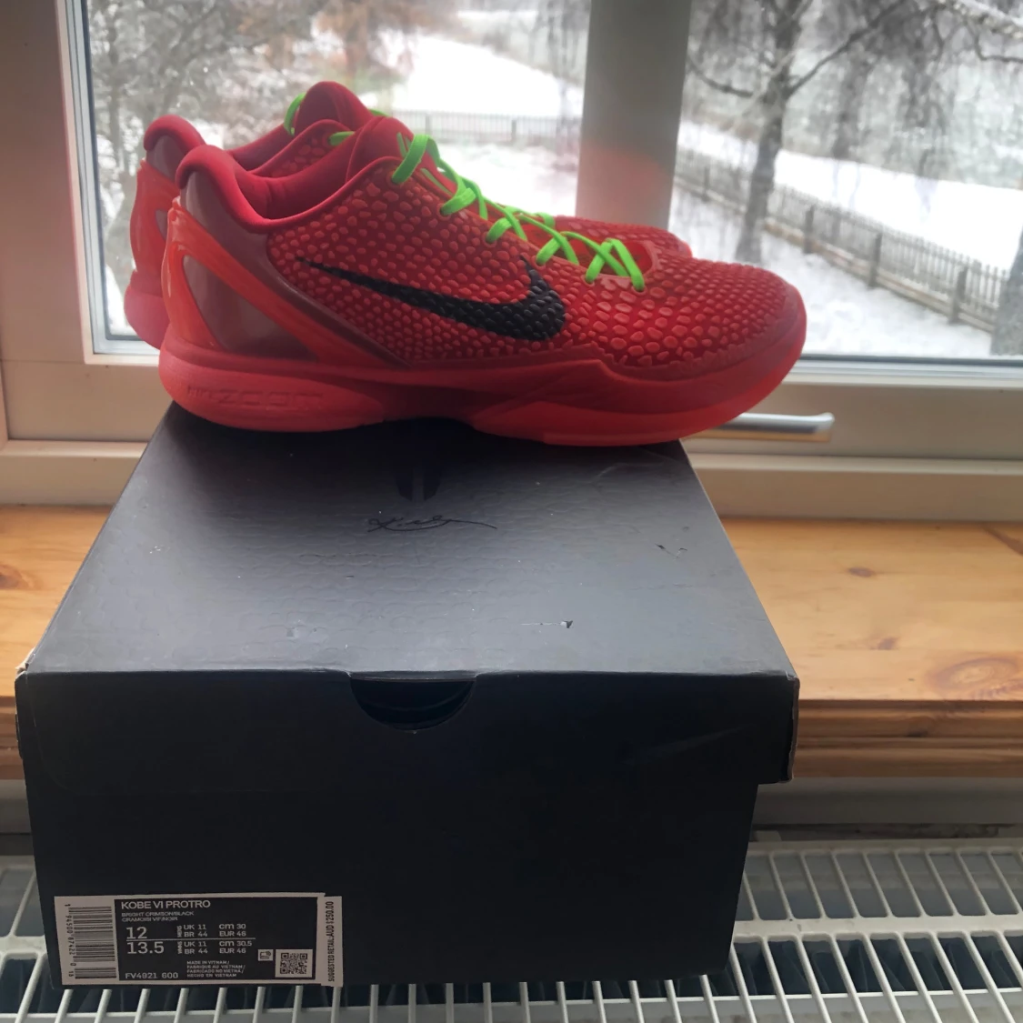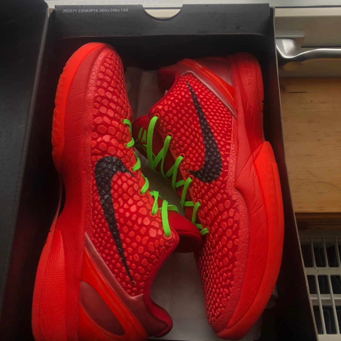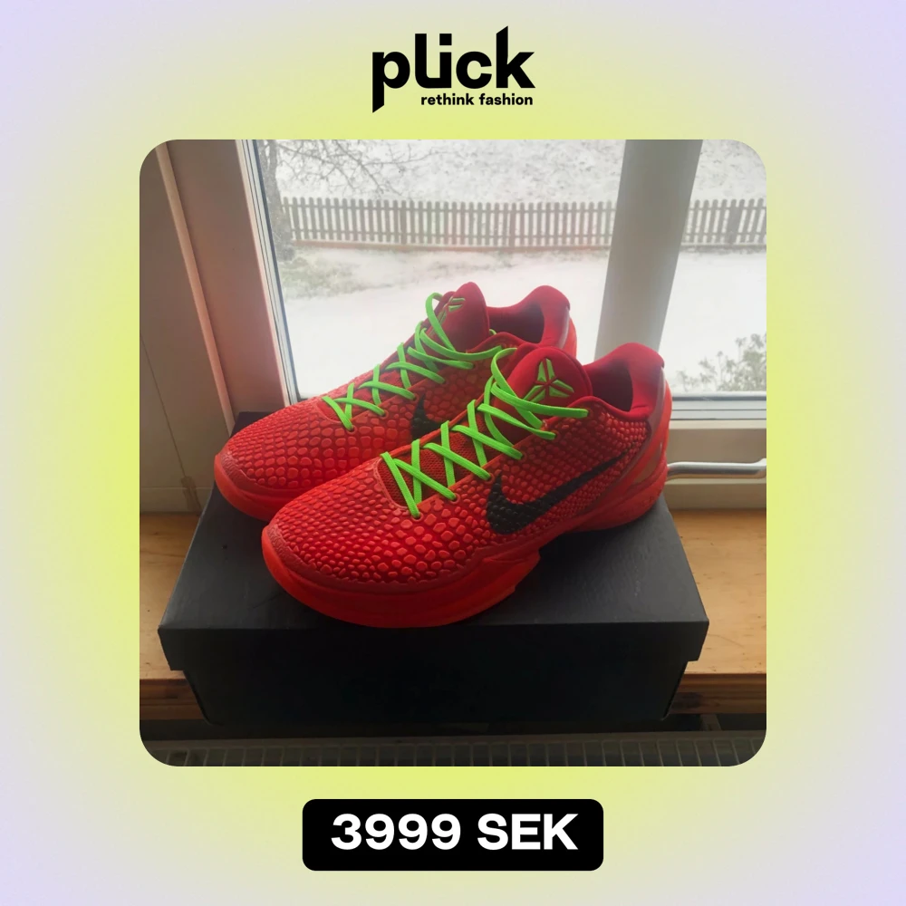 Kobe 6 reverse grinch, finns att hämta i Jönköping men kan även frakta i Sverige. Original kartong finns med och skorna är knappt använda inga synliga defekter. Alla frågor svaras det är bara att skriva. Pris är till viss del diskuterbart. Skriv för mer bilder