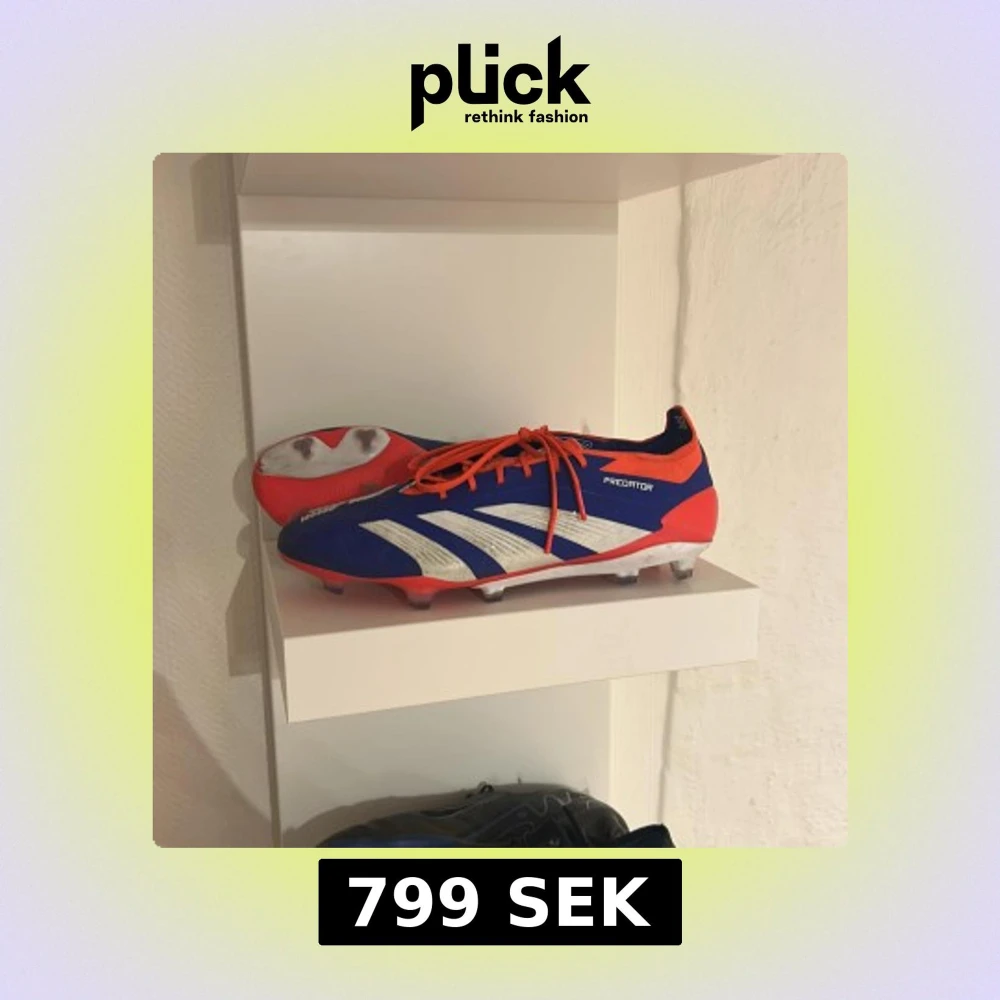 Säljer ett par Adidas Predator elite fotbollsskor i blått med röda och vita detaljer. Gjorda för både gräs och konstgräs. Jag har bara använt de i ca 1 månad, så de är i princip som nya - bara lite smutsiga från konstgräset. Kontakta mig för mer bilder eller info. Original påsen tillkommer!