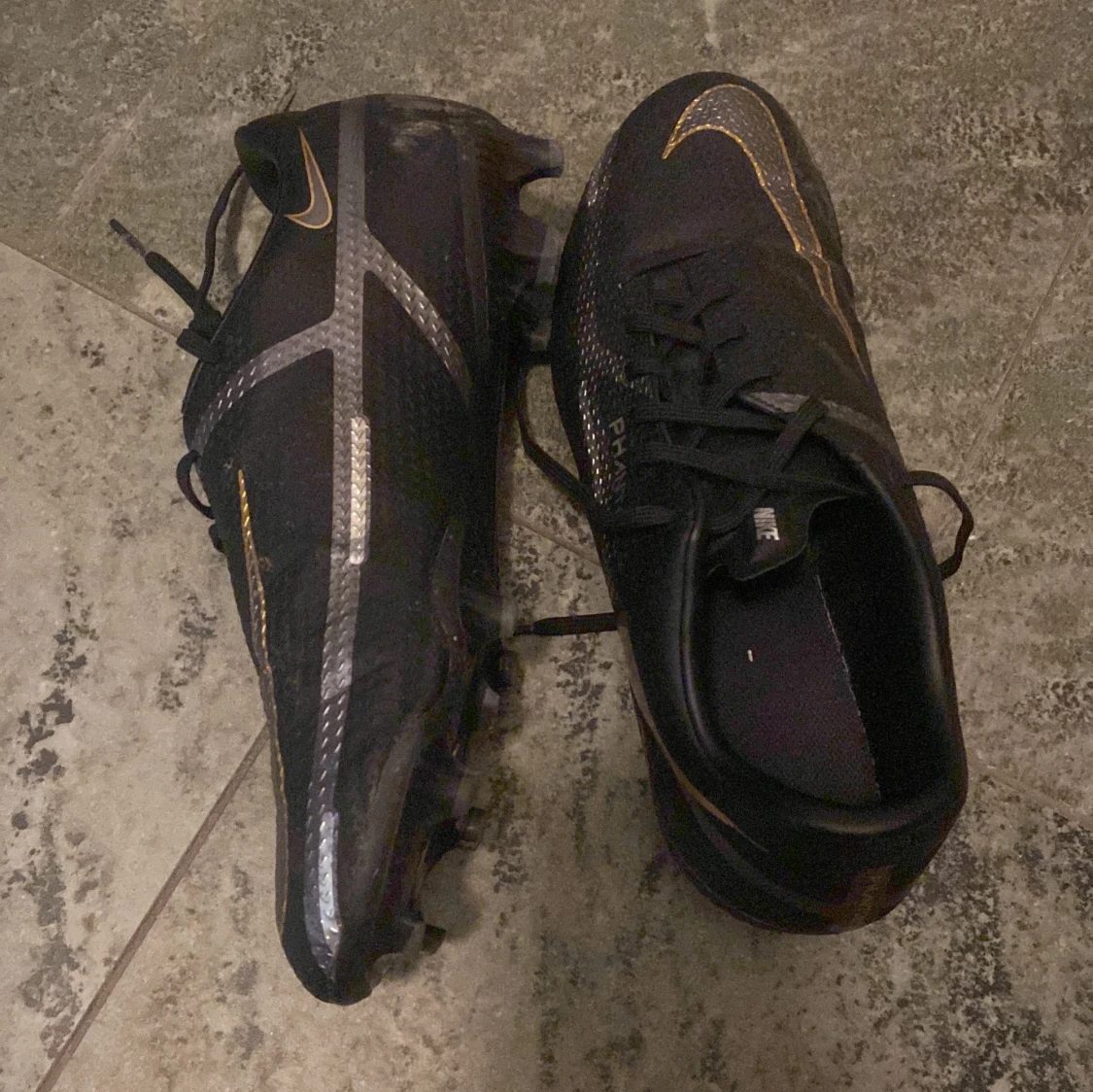 Hej! jag säljer mina fotbollsskor i storlek 41 men jag har vanligtvis 39/40 så de är väldigt små i strlk, vet inte vad de heter men det står ”phantom” på de och de är från märket Nike. Jag köpte de i Maj 2023 men i gott skick❣️(konstgrässkor och gräs)