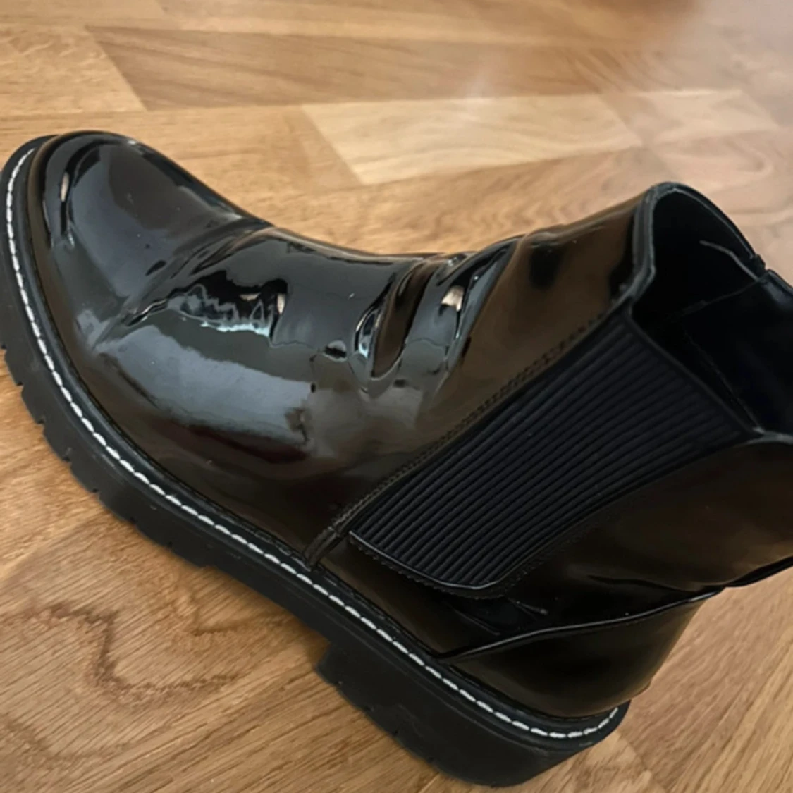 Jätte fina lack skor, finns mindre repor som blivit i själva lacken men de är ingen som syns på håll. (Se sista bilden). Strl 41 men de är små i storleken då jag egentligen har strl 39-40 men behövde 41 i dessa.